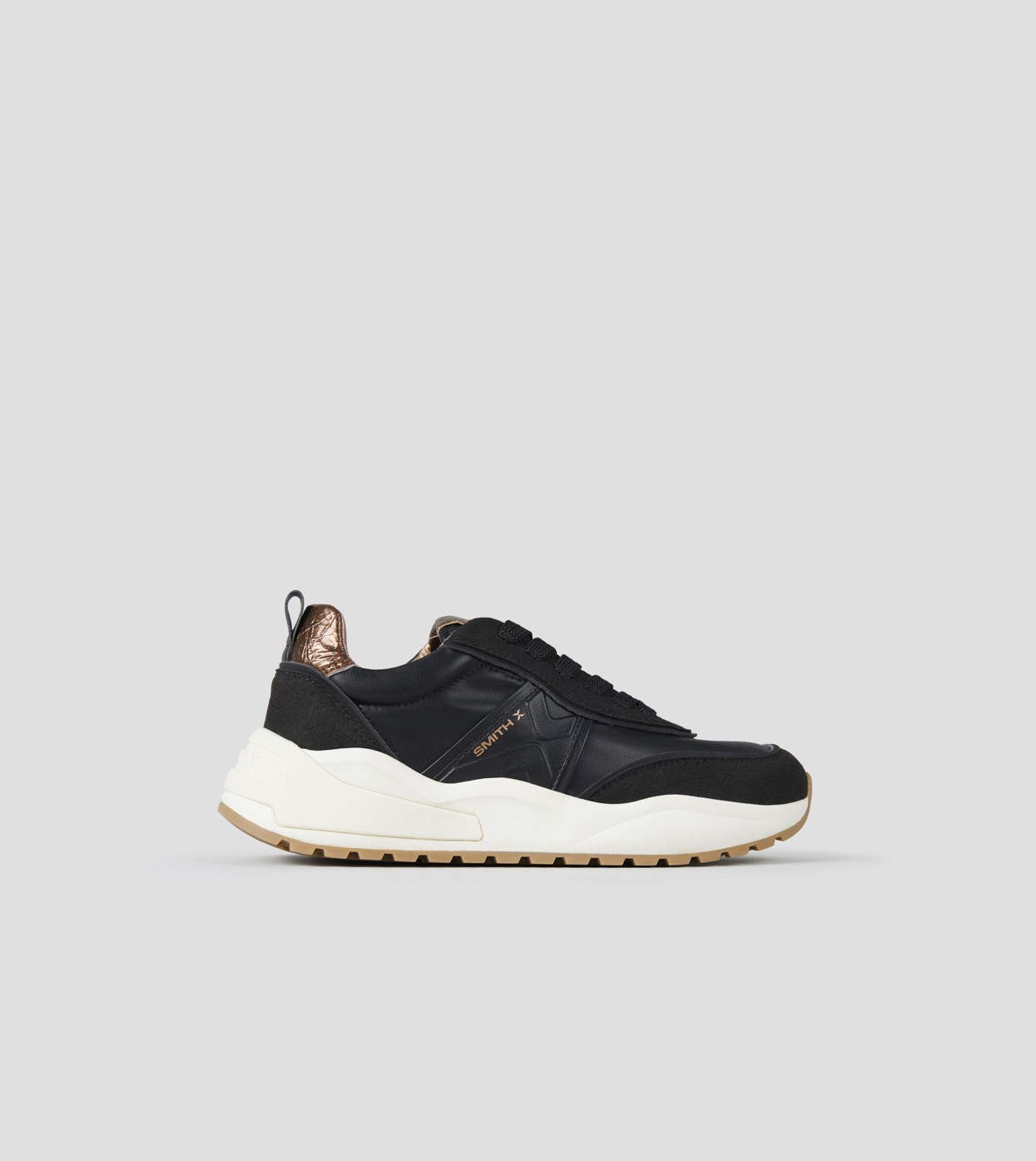 Blaze Woman in black and suede with copper laminated heel