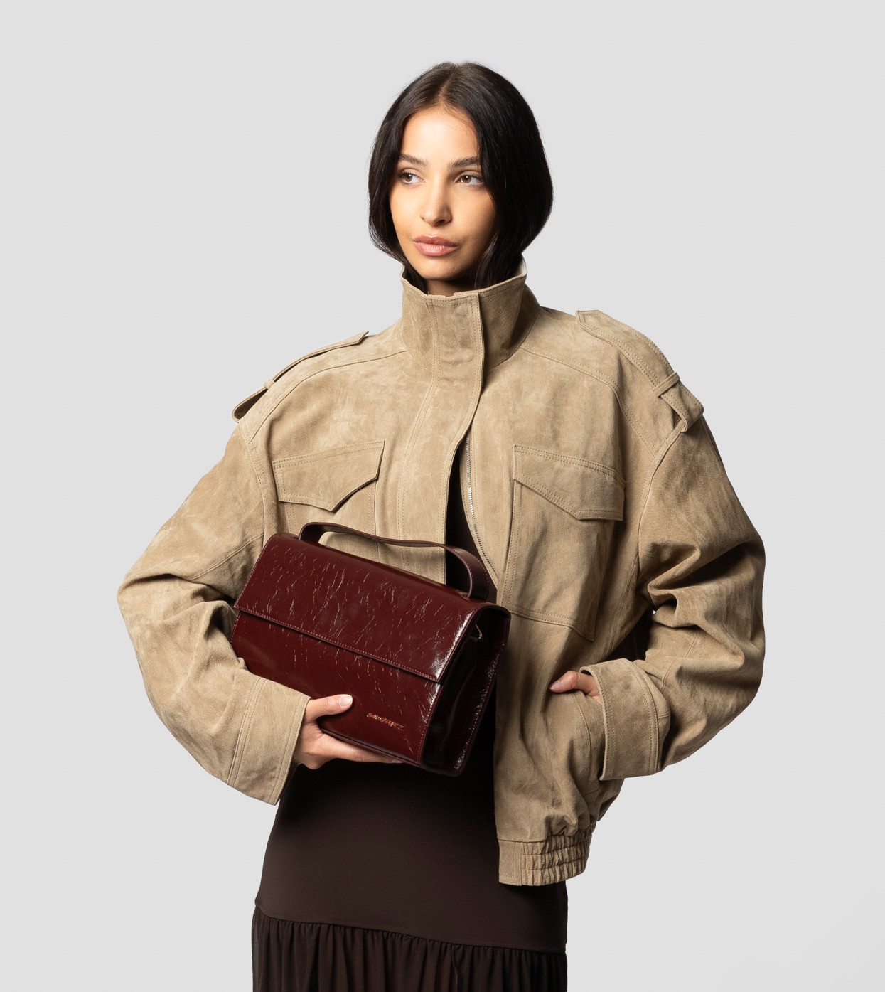 Holly shoulder bag with shoulder strap in burgundy naplak leather