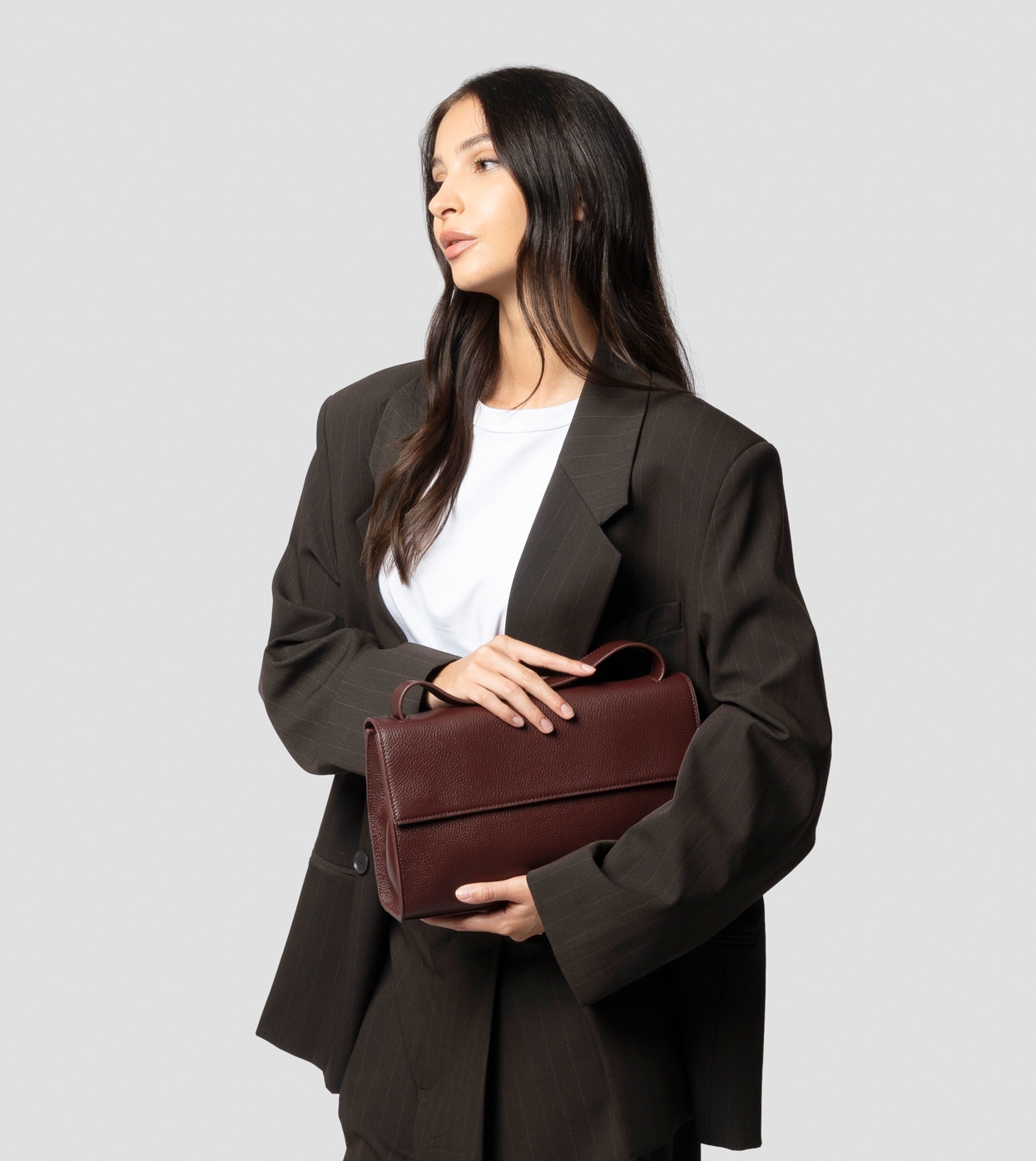 With its rigid silhouette and minimalist front flap, HOLLY is a shoulder bag that combines structure and femininity. Equipped with a removable shoulder strap, it adapts elegantly to every moment of the day, from business looks to aperitifs in the city.