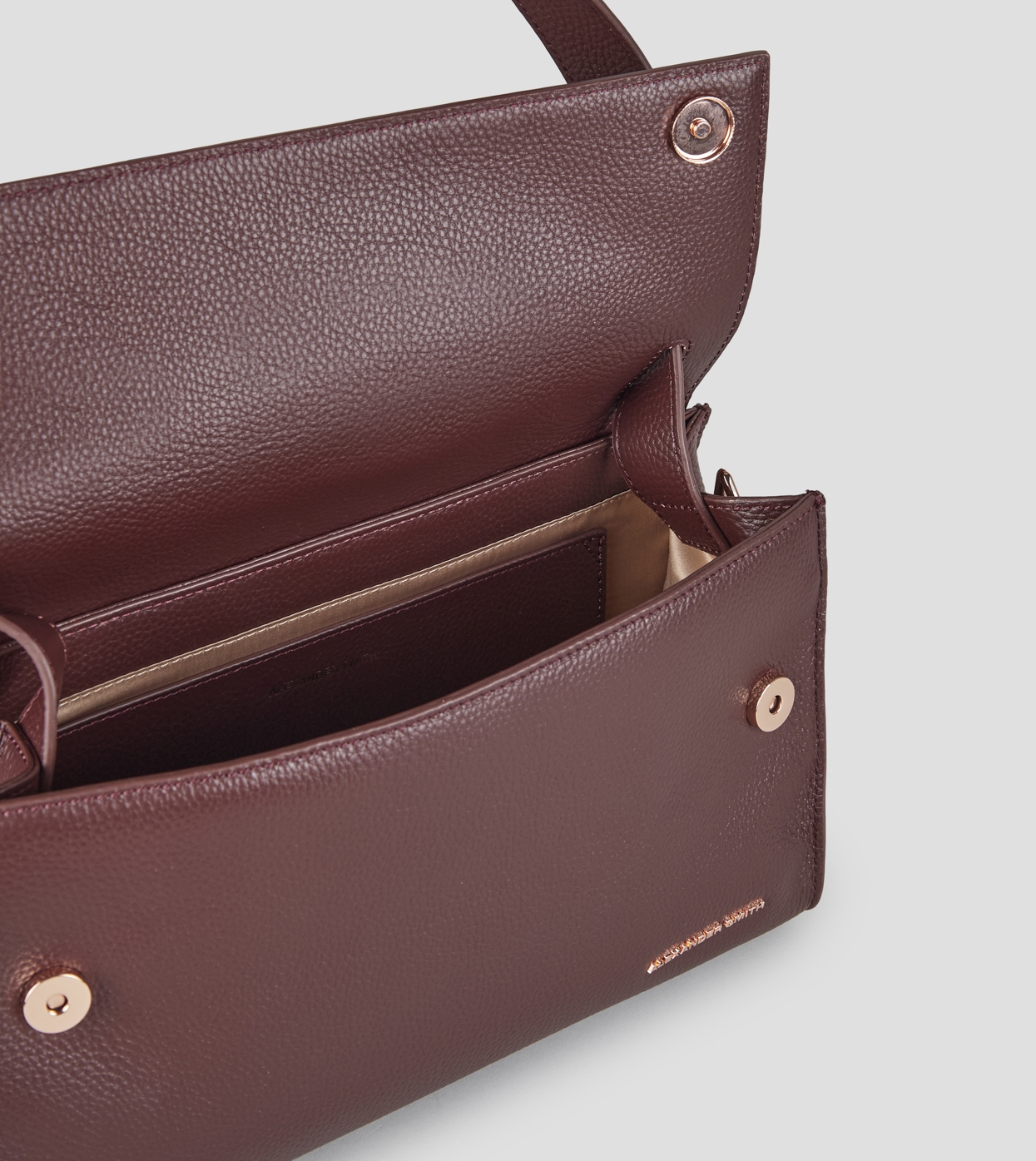 Holly shoulder bag with shoulder strap in bordeaux tumbled leather