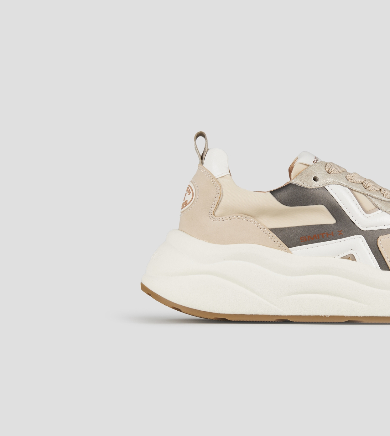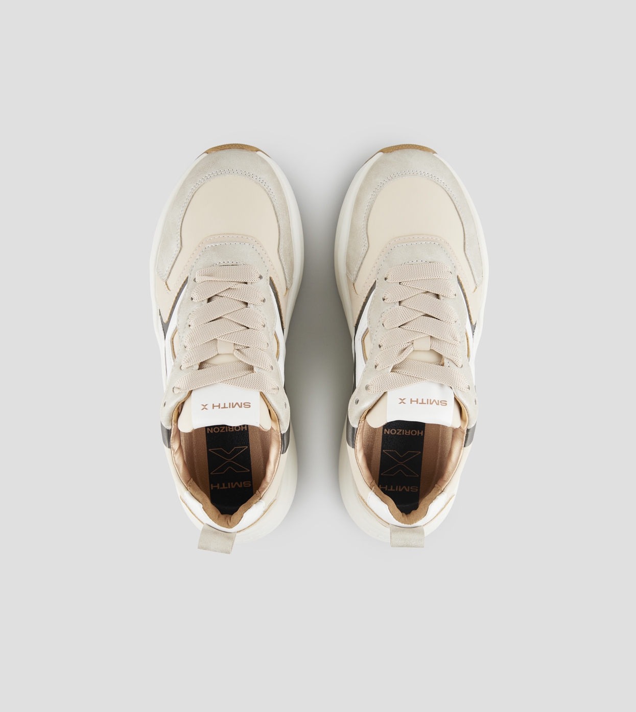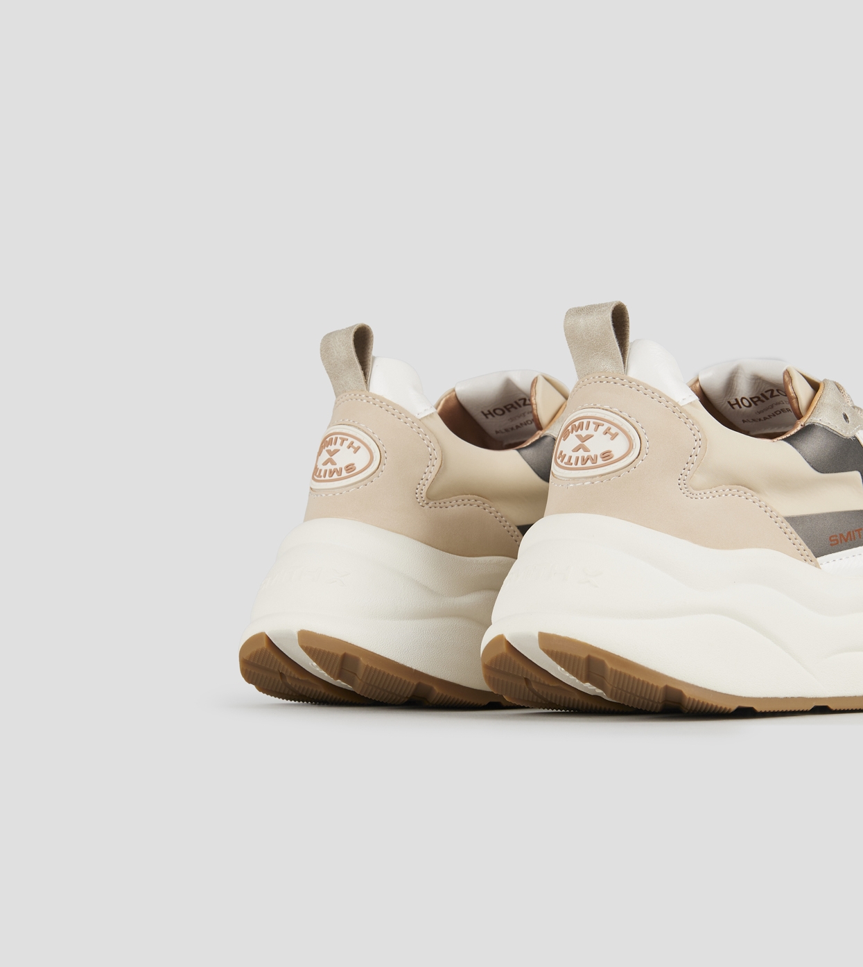 Born to move, designed to stand out. HORIZON is the Smith X running sneaker that looks ahead, beyond every limit. With its bold yet streamlined silhouette, oversized sole, and contrasting mix of materials, HORIZON effortlessly blends performance and style.Upper with leather and nylon insertsLogo on the side and backRunning sole40 mm soleRemovable 10 mm internal insole