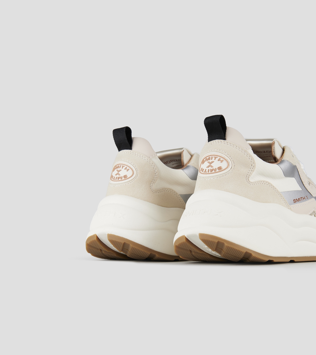 Born to move, designed to stand out. HORIZON is the Smith X running sneaker that looks ahead, beyond every limit. With its bold yet streamlined silhouette, oversized sole, and contrasting mix of materials, HORIZON effortlessly blends performance and style.Upper with leather and nylon insertsLogo on the side and backRunning sole40 mm soleRemovable 10 mm internal insole