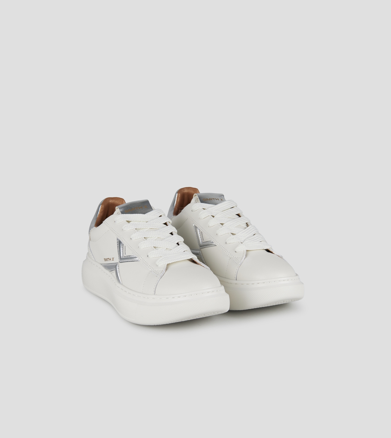 College Donna in bianco con logo e tallone laminato argento