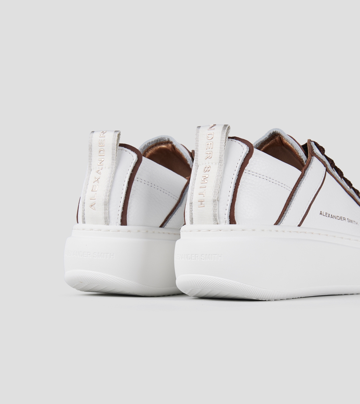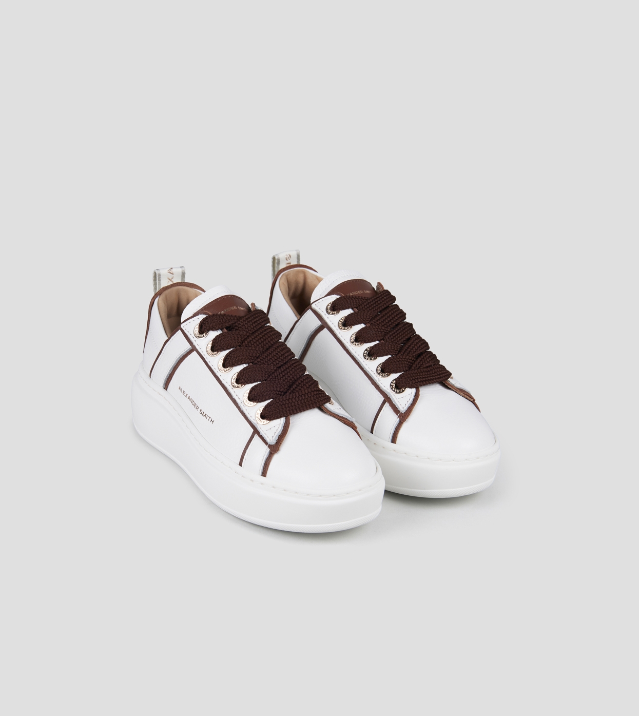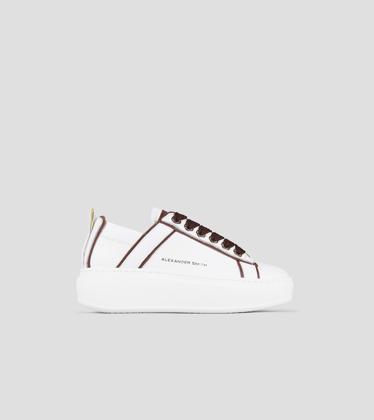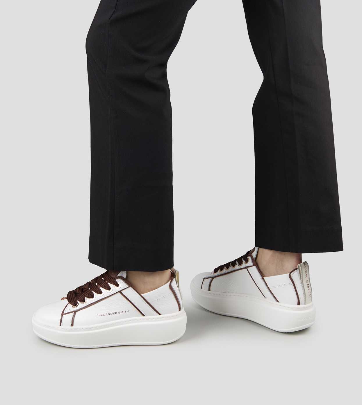 Wembley Alta Donna in pelle bianca e dettagli marrone scuro