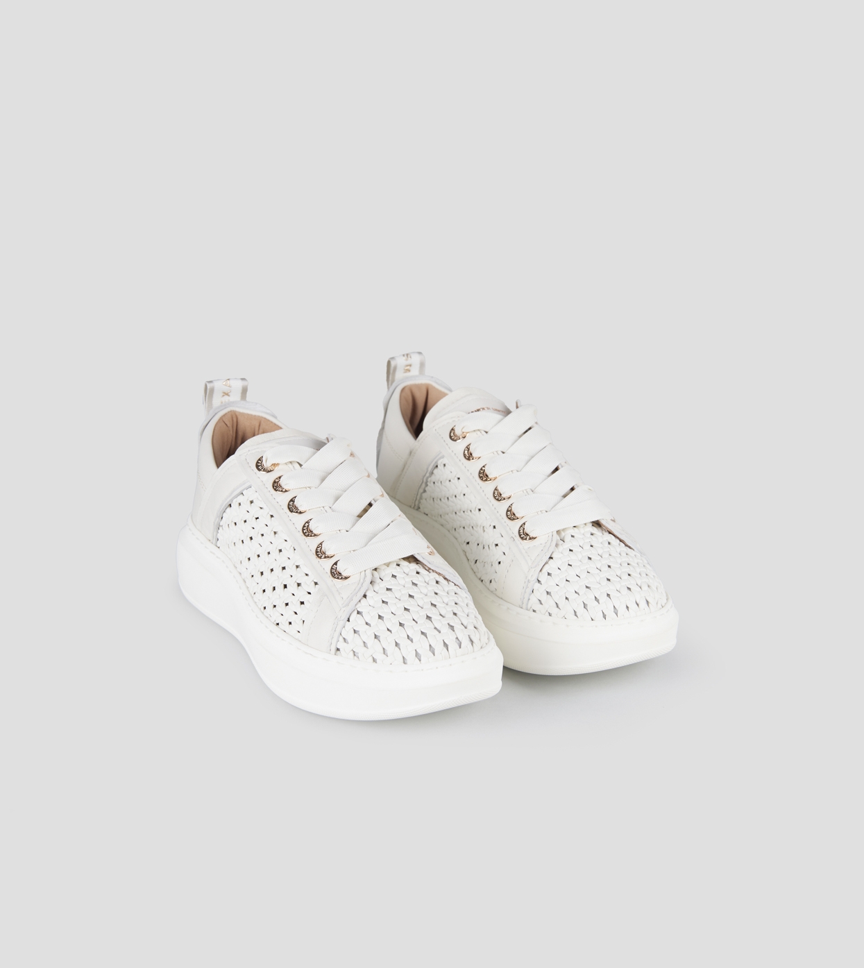 Wembley Donna in pelle intrecciata bianca e tallone in pelle liscia
