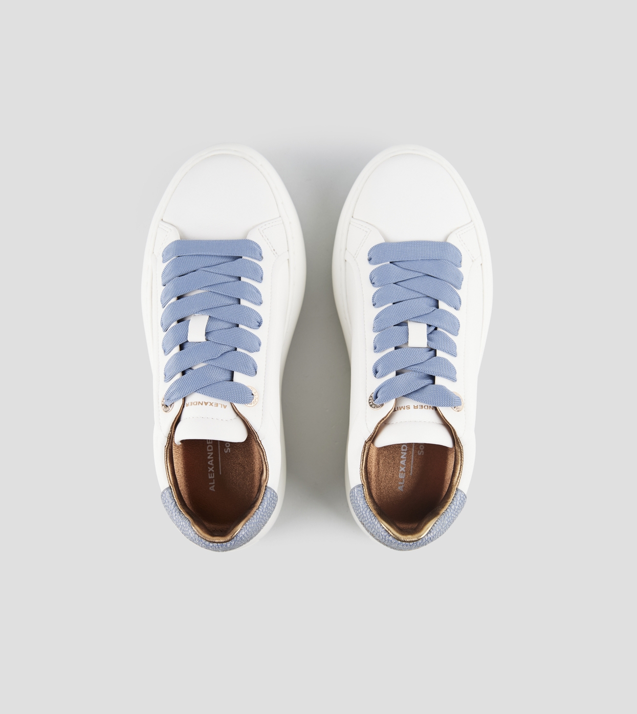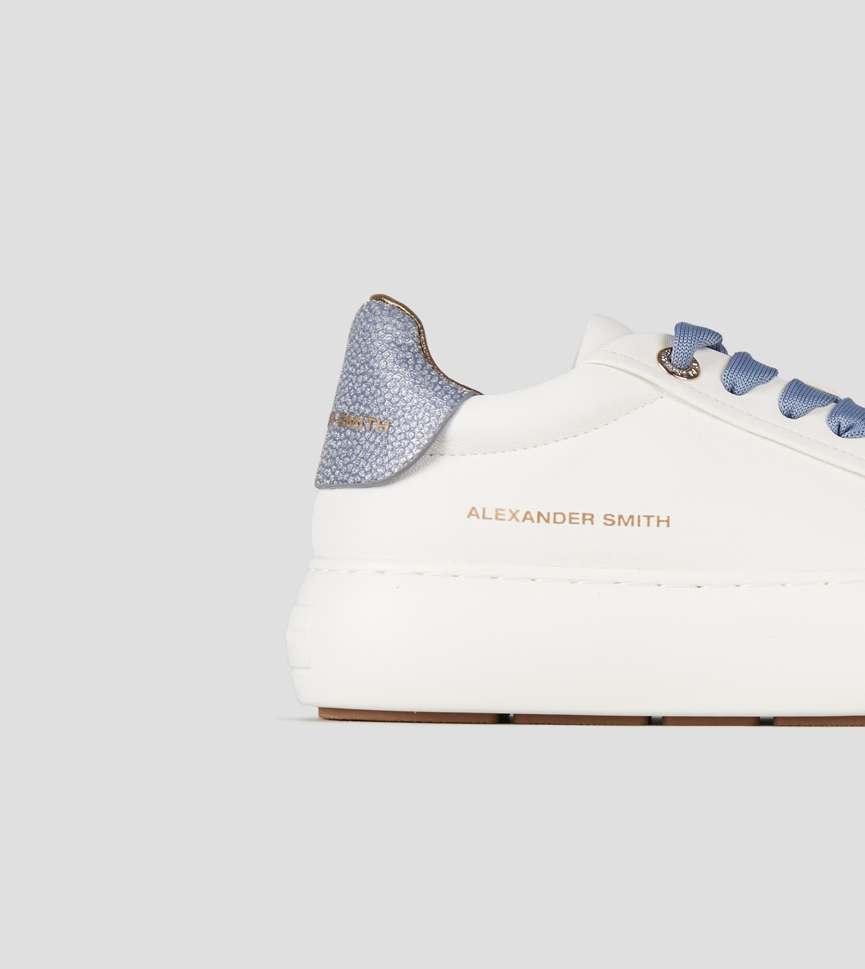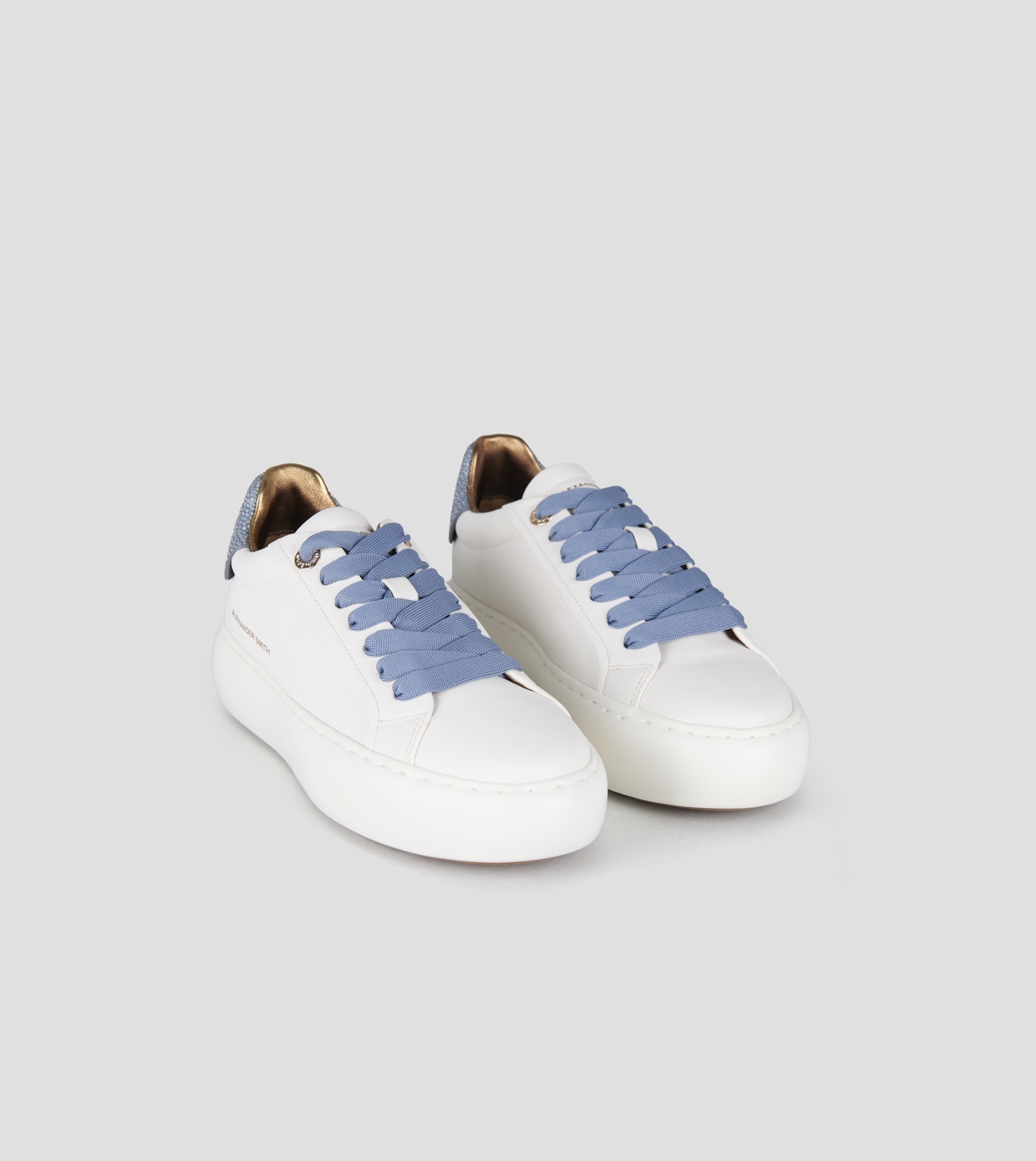 Soho Donna in pelle bianca e tallone azzurro con glitter
