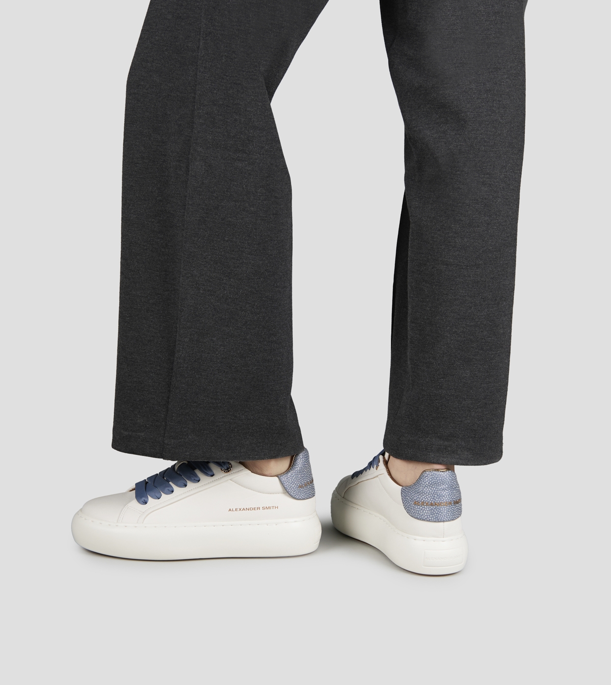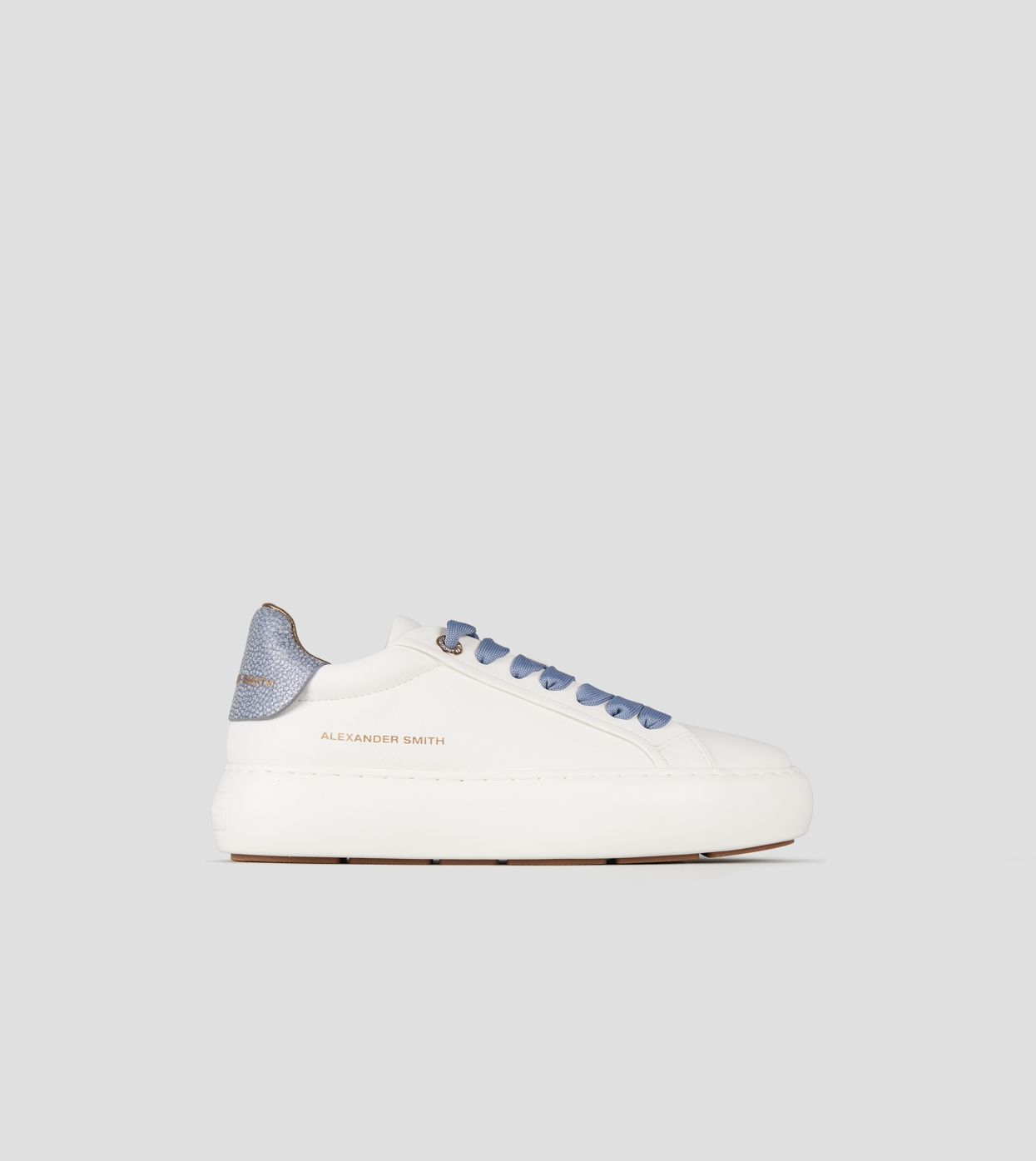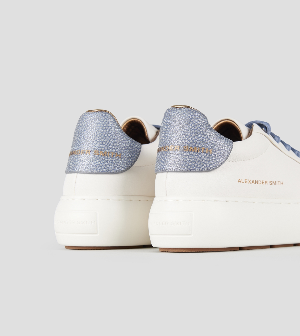 Soho Donna in pelle bianca e tallone azzurro con glitter
