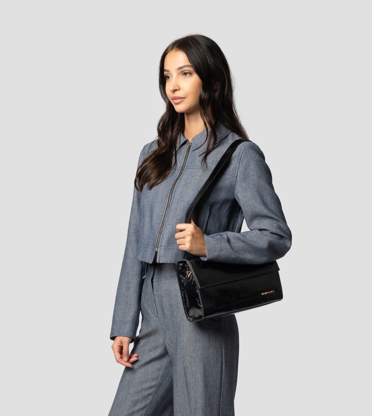 Con la sua silhouette rigida e il flap frontale essenziale, HOLLY è la borsa a spalla che unisce struttura e femminilità. Dotata di tracolla removibile, si adatta con eleganza a ogni momento della giornata, dal business look all’aperitivo in città.