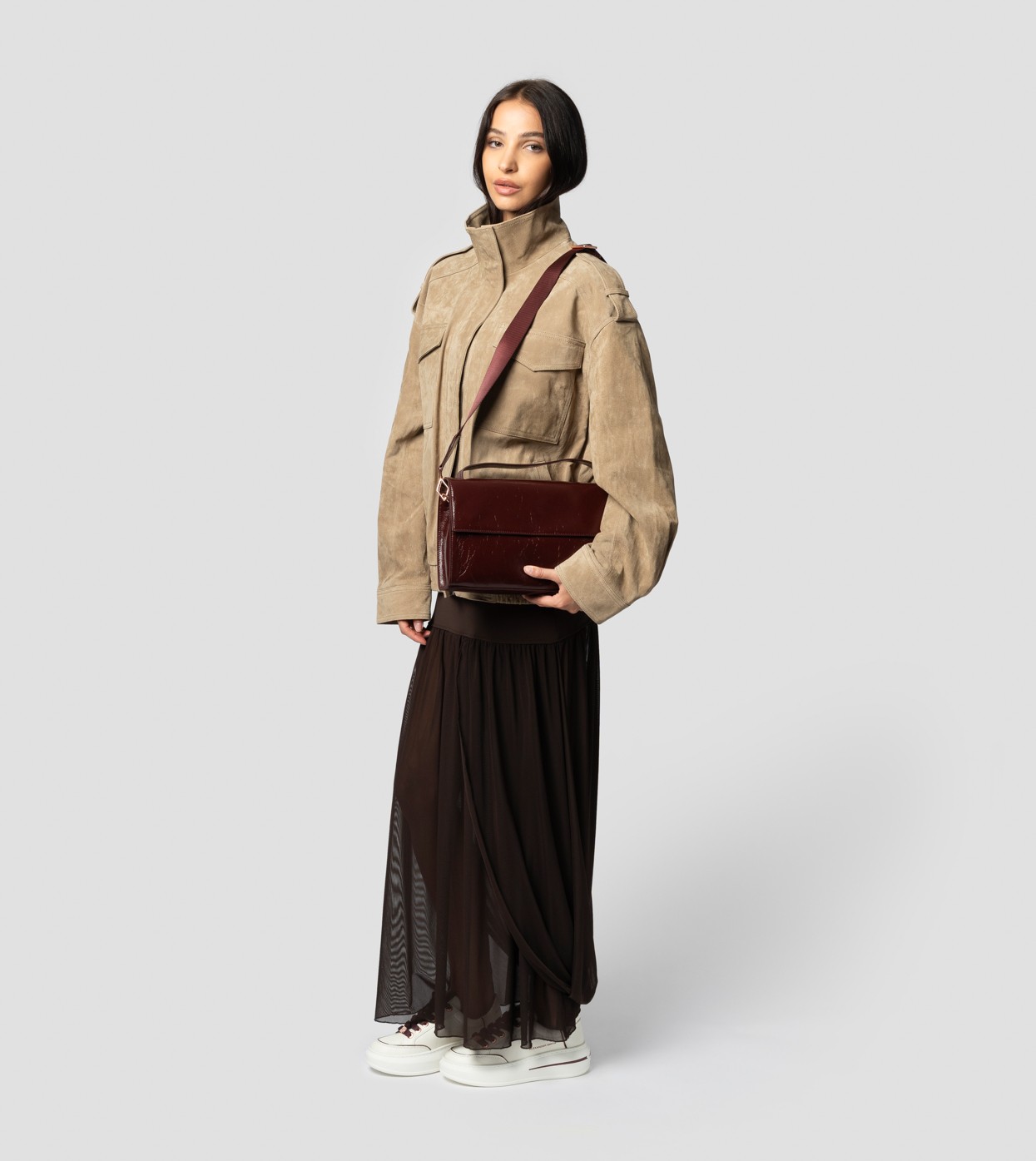 Con la sua silhouette rigida e il flap frontale essenziale, HOLLY è la borsa a spalla che unisce struttura e femminilità. Dotata di tracolla removibile, si adatta con eleganza a ogni momento della giornata, dal business look all’aperitivo in città.