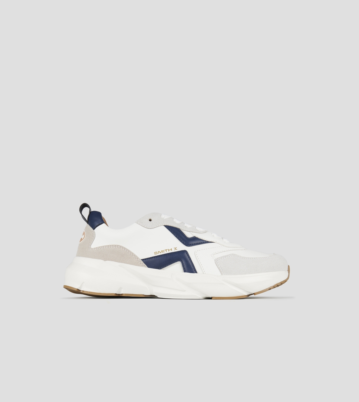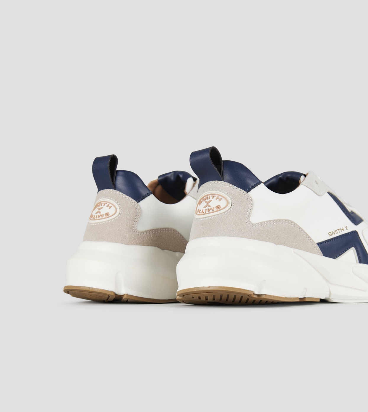 Horizon Uomo in bianco con inserti in suede e dettagli blu