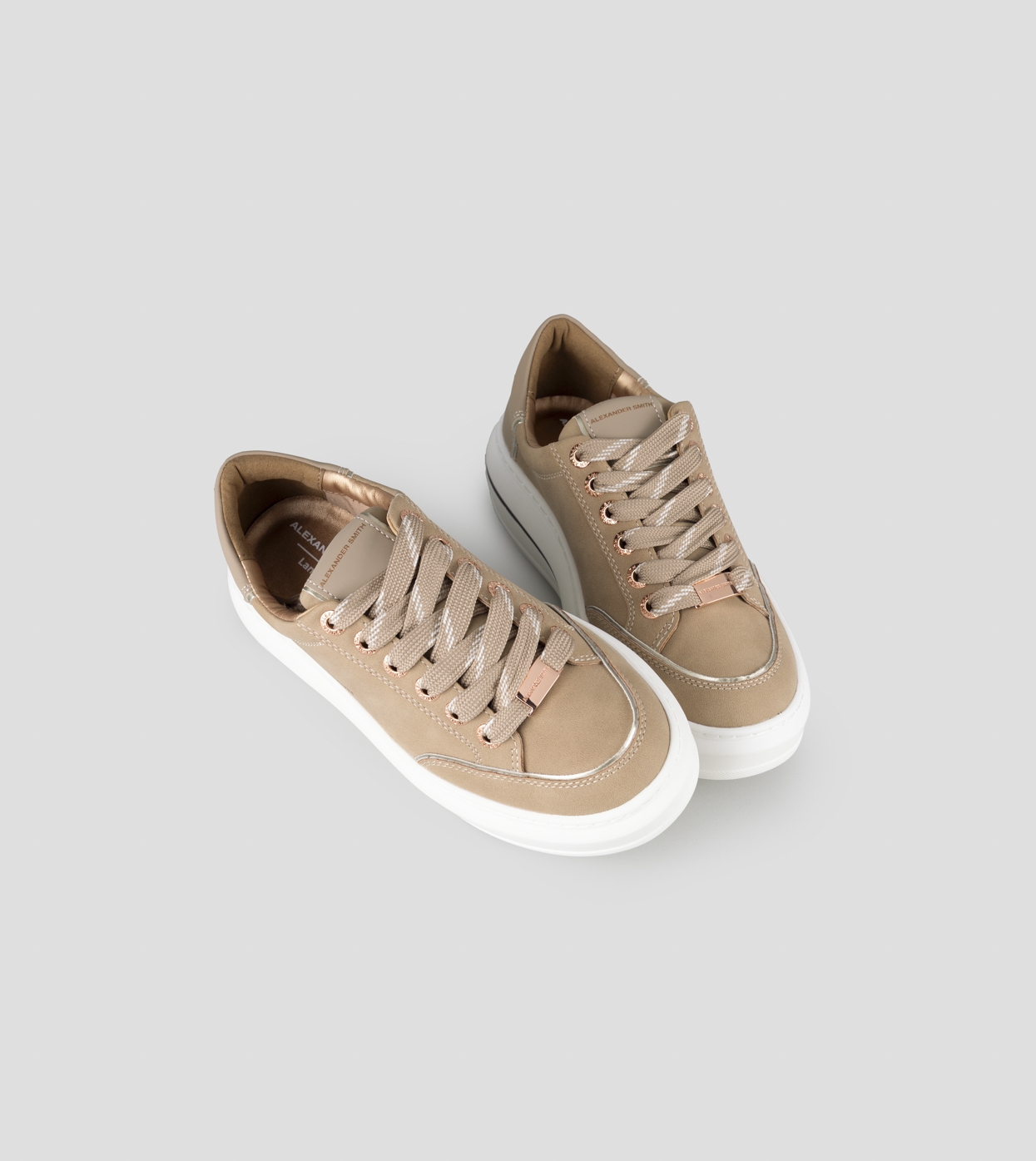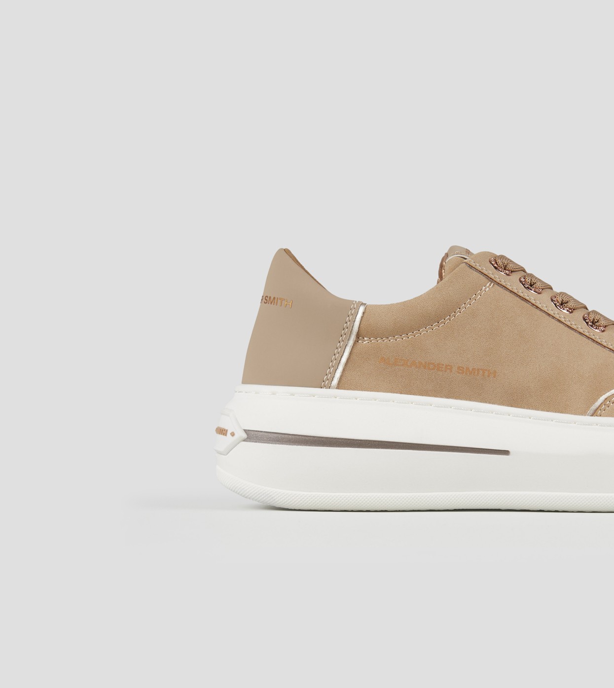 Il modello prende il nome da Lancaster Gate, zona del centro di Londra adiacente ai Kensington Gardens: un’area residenziale in cui lo stile classico e barocco delle abitazioni si fonde con i resti di una chiesa Gotica del 1800. Con lo stesso perfetto mix di stili, la Lancaster di Alexander Smith è un match tra i dettagli preziosi e ricercati della tomaia e degli occhielli, con l’audacia e l’importanza della suola, per uno stile che combina eleganza e unicità, in perfetta sintonia con l’anima del brand, in questa variante in suede cognac e tallone in pelle gommata. In omaggio laccioflat nude con tratteggi bianchi.