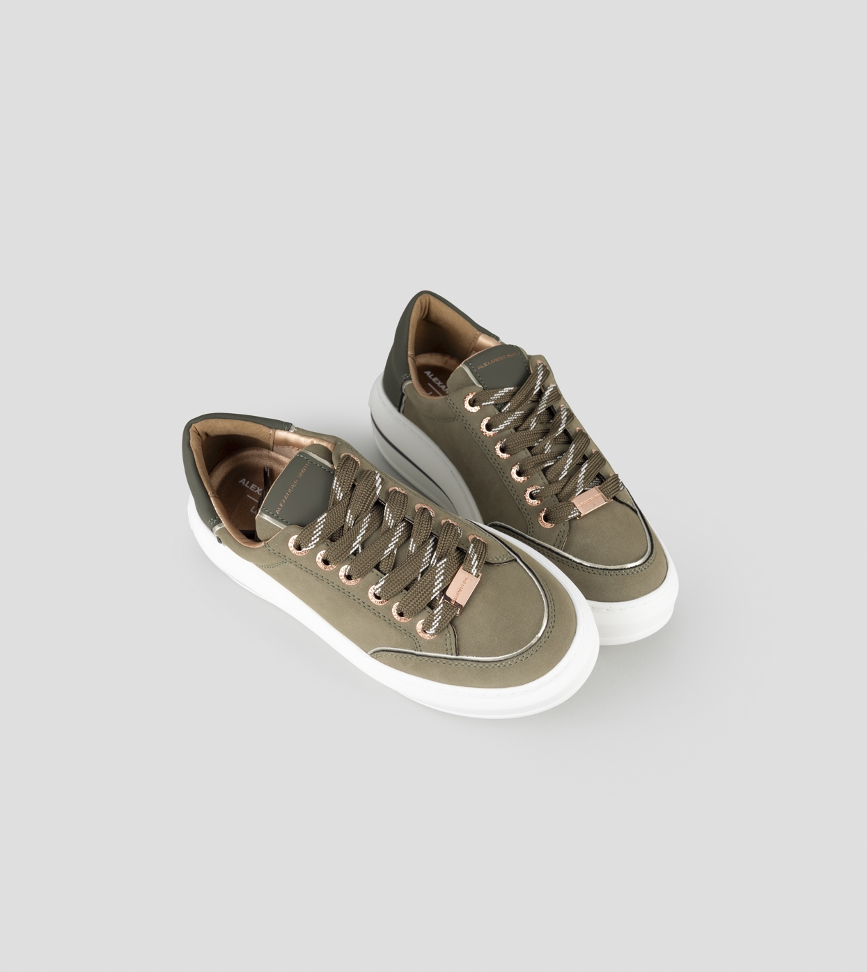 Il modello prende il nome da Lancaster Gate, zona del centro di Londra adiacente ai Kensington Gardens: un’area residenziale in cui lo stile classico e barocco delle abitazioni si fonde con i resti di una chiesa Gotica del 1800. Con lo stesso perfetto mix di stili, la Lancaster di Alexander Smith è un match tra i dettagli preziosi e ricercati della tomaia e degli occhielli, con l’audacia e l’importanza della suola, per uno stile che combina eleganza e unicità, in perfetta sintonia con l’anima del brand, in questa variante in suede verde militare e tallone in pelle gommata. In omaggio laccio flat verde militare con tratteggi bianchi.
