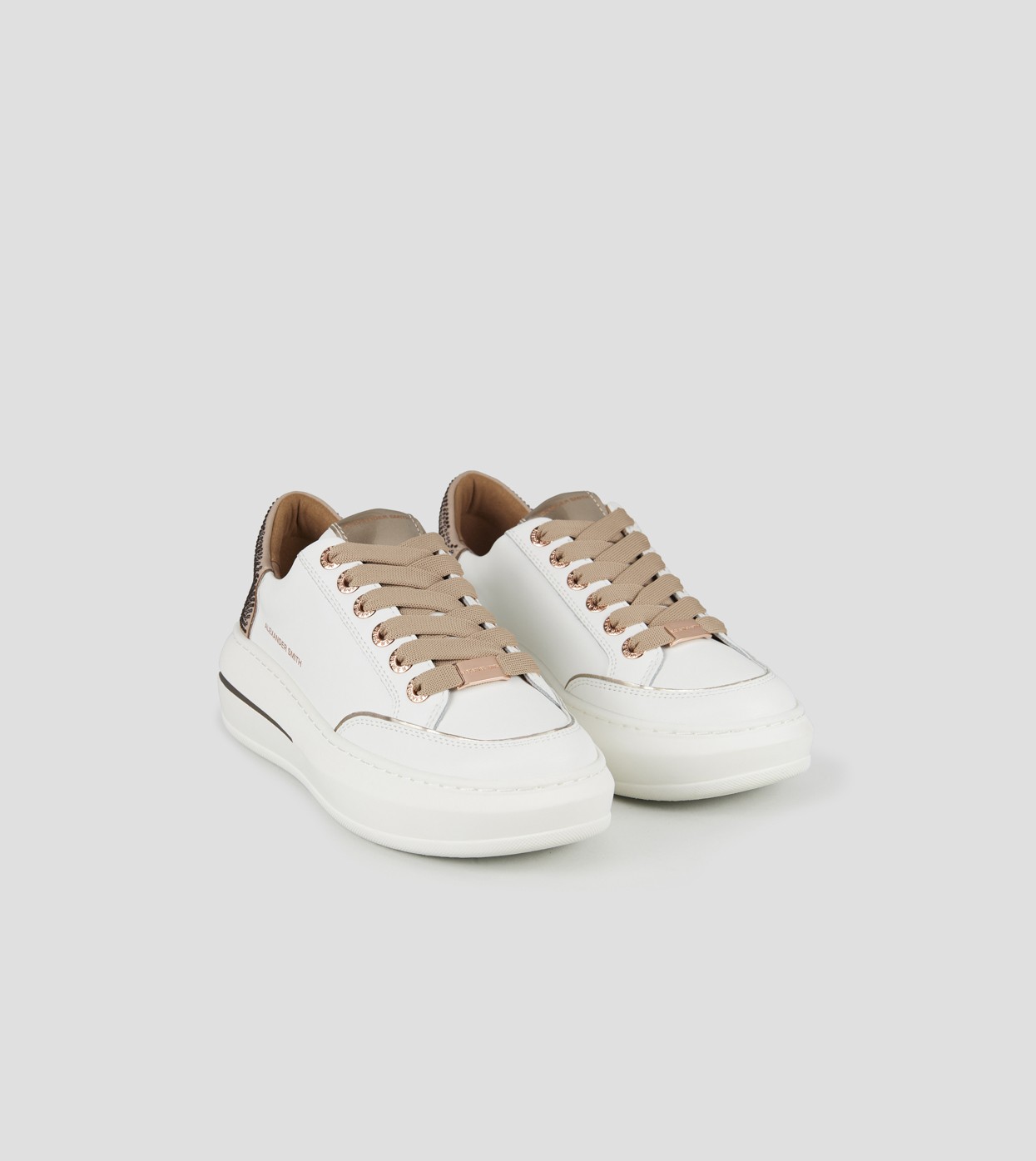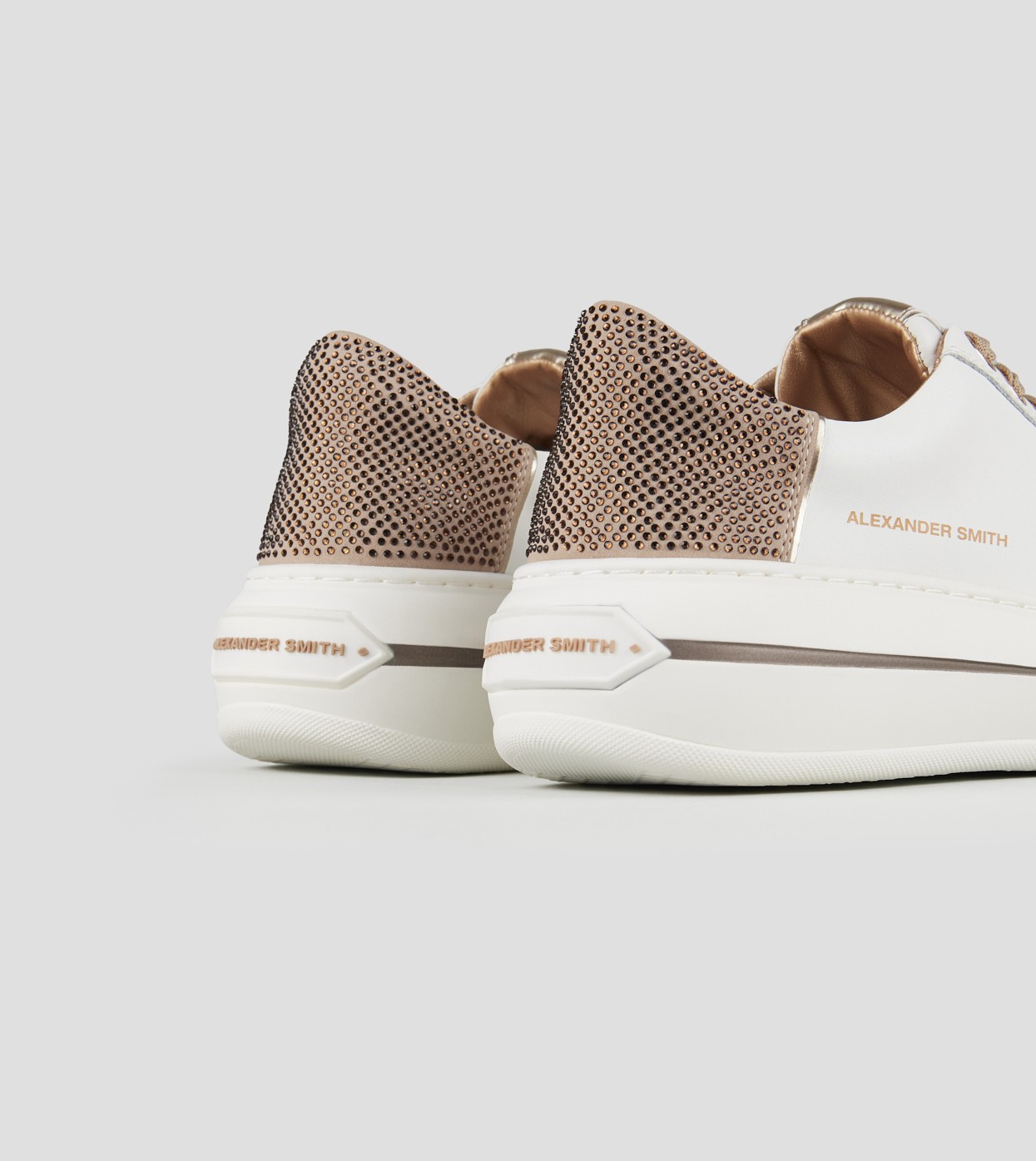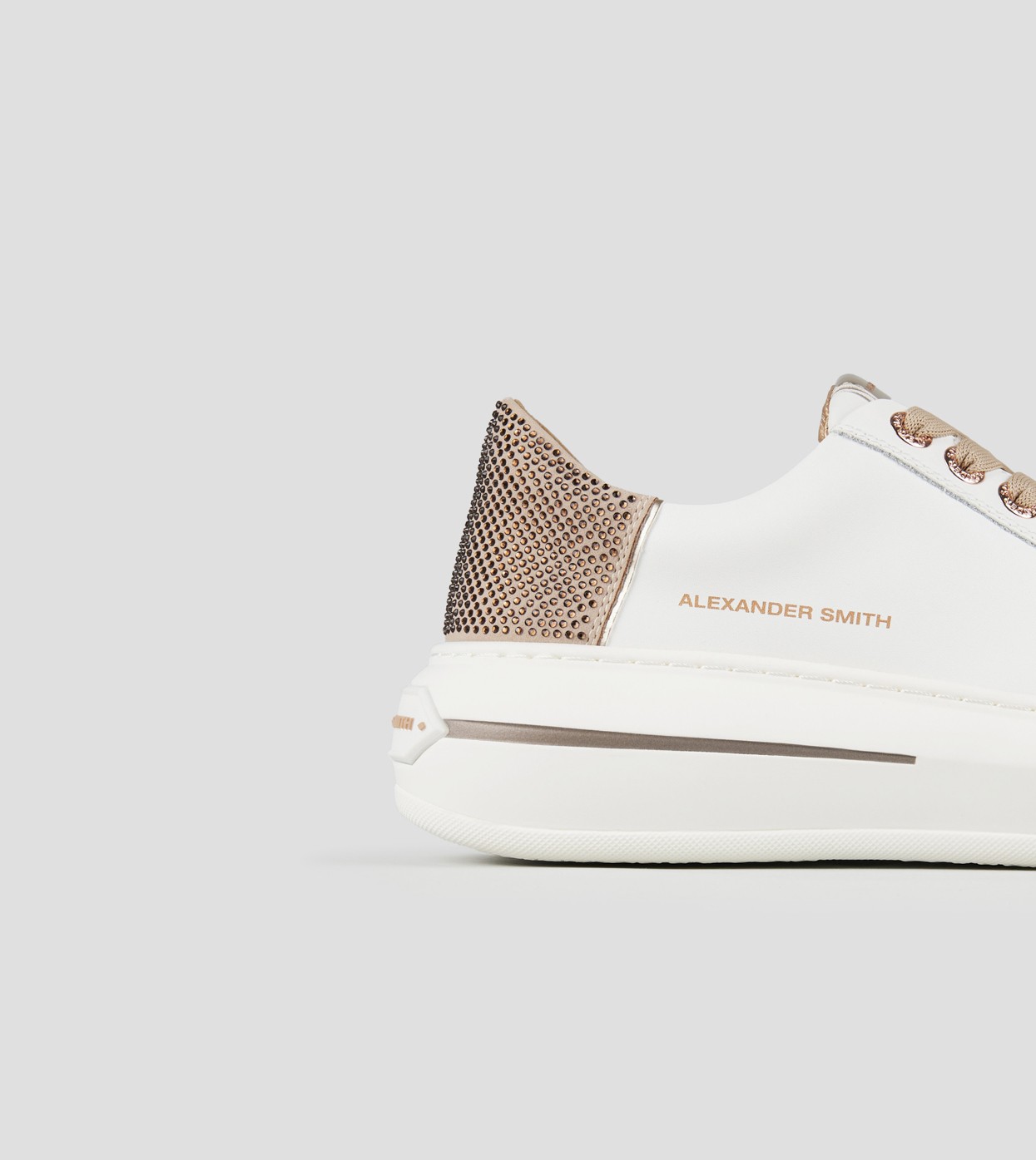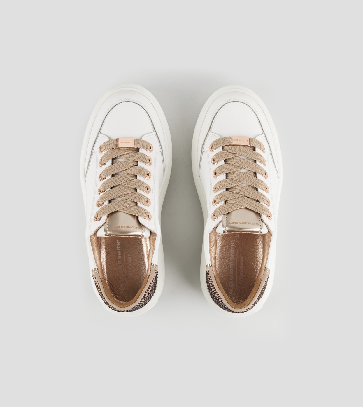 Il modello prende il nome da Lancaster Gate, zona del centro di Londra adiacente ai Kensington Gardens: un’area residenziale in cui lo stile classico e barocco delle abitazioni si fonde con i resti di una chiesa Gotica del 1800. Con lo stesso perfetto mix di stili, la Lancaster di Alexander Smith è un match tra i dettagli preziosi e ricercati della tomaia e degli occhielli, con l’audacia e l’importanza della suola, per uno stile che combina eleganza e unicità, in perfetta sintonia con l’anima del brand, in questa variante in pelle bianca e tallone beige con microborchie.
