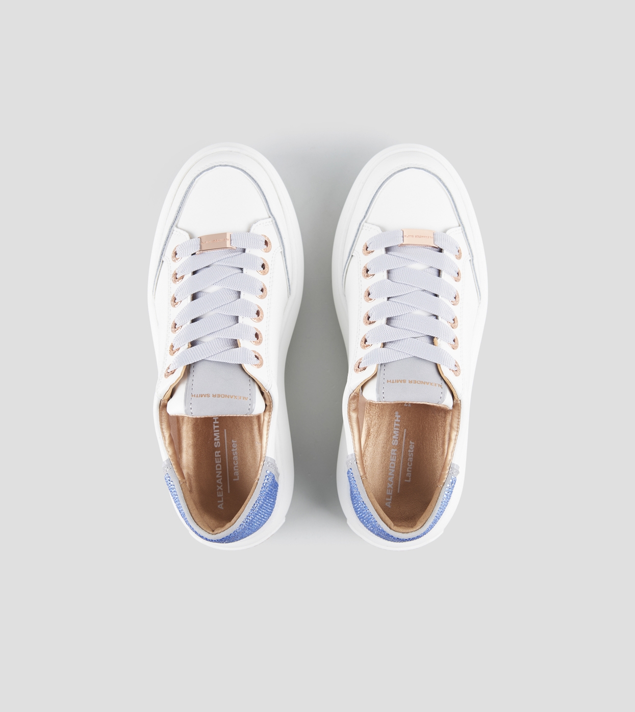 Lancaster Donna in pelle bianca e tallone con strass azzurri