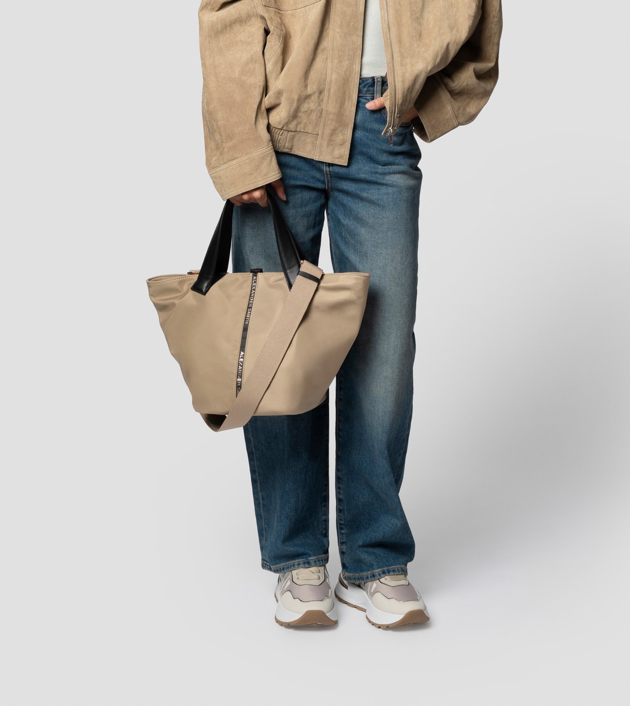 Lauren Medium borsa a mano con tracolla in nylon beige
