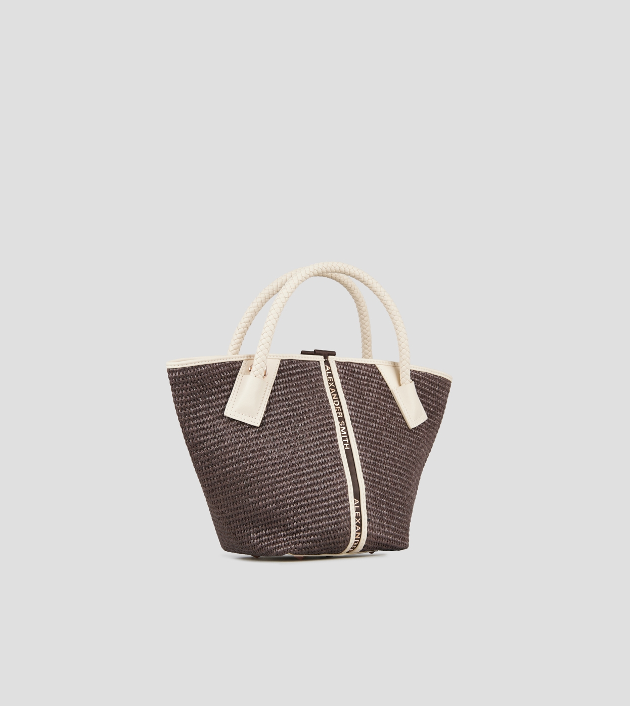 Lauren Small borsa a mano con tracolla in rafia marrone e manico intrecciato crema