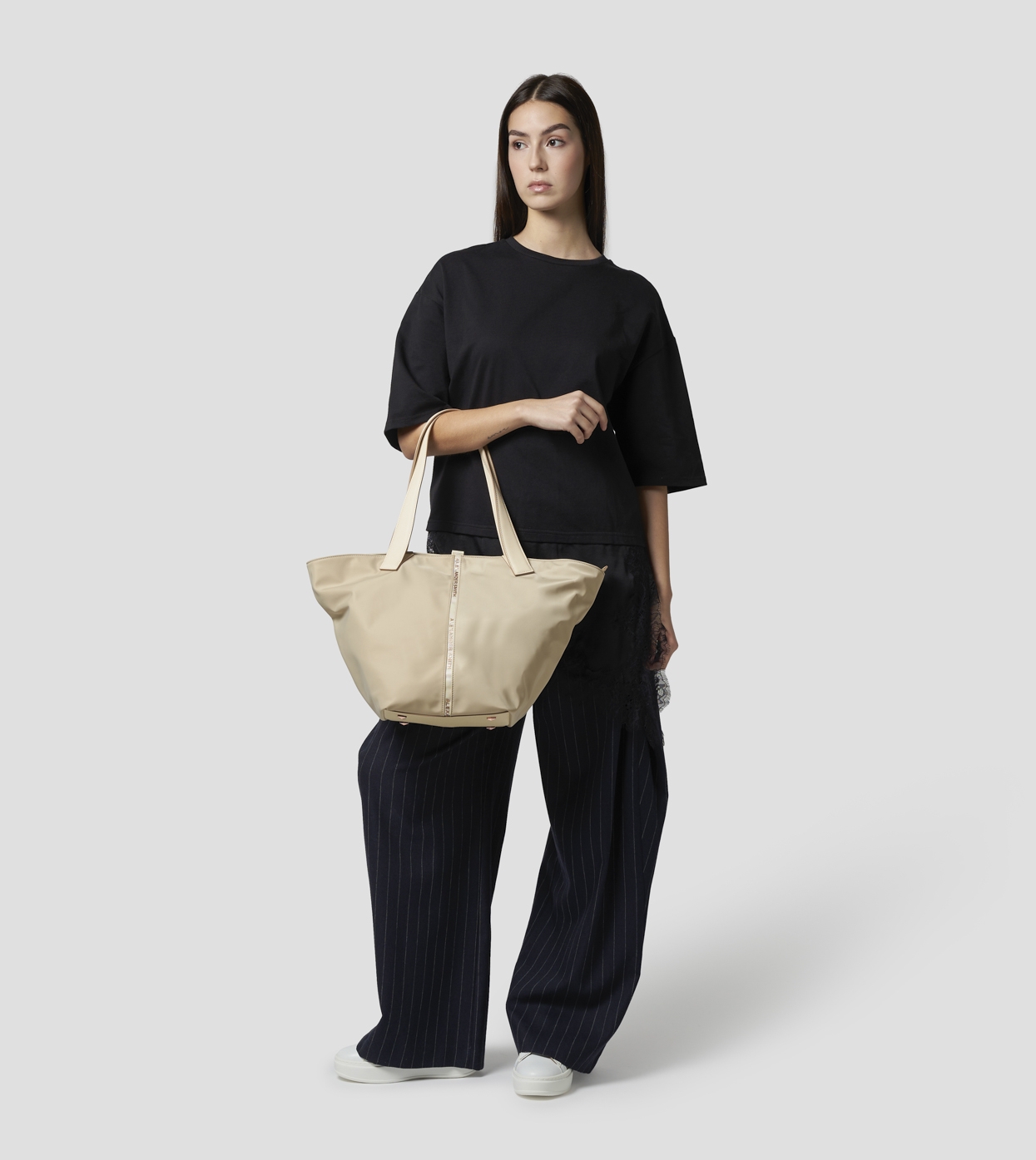 LAUREN è la shopper che unisce funzionalità e stile in un design contemporaneo e deciso. Le linee geometriche e il dettaglio centrale con logo definiscono un carattere forte ma versatile, perfetto per completare ogni look con un tocco moderno.