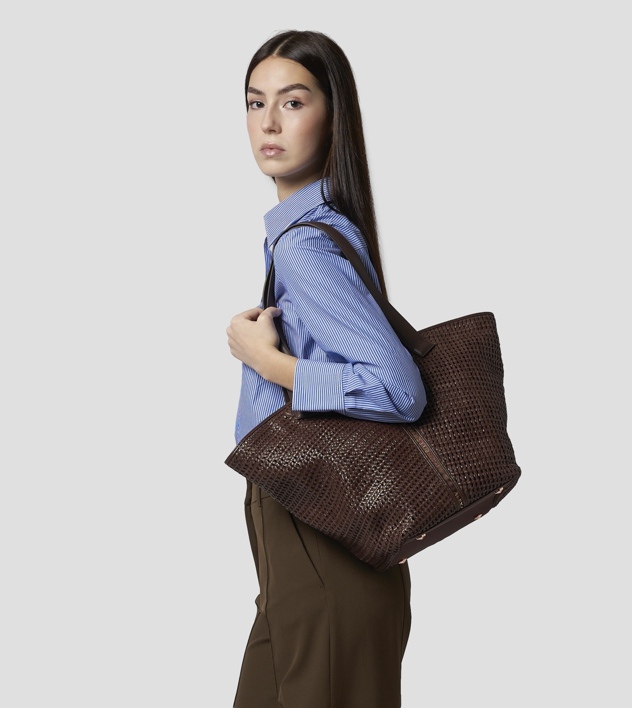 LAUREN è la shopper che unisce funzionalità e stile in un design contemporaneo e deciso. Le linee geometriche e il dettaglio centrale con logo definiscono un carattere forte ma versatile, perfetto per completare ogni look con un tocco moderno.