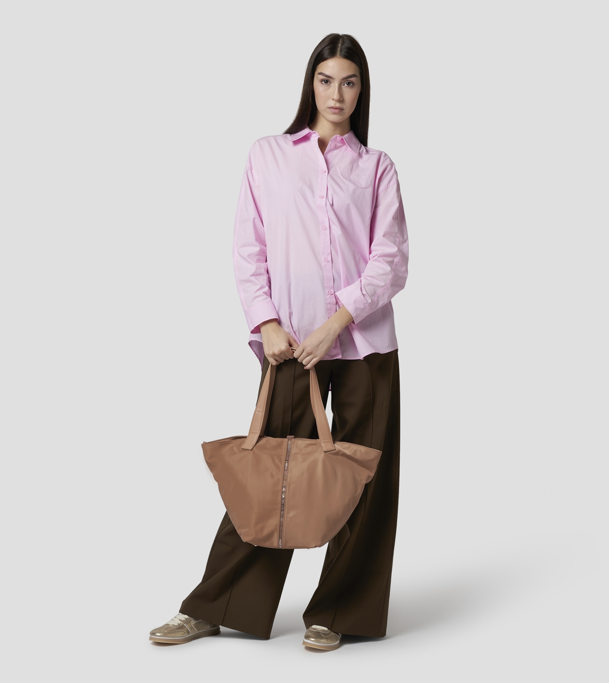 LAUREN è la shopper che unisce funzionalità e stile in un design contemporaneo e deciso. Le linee geometriche e il dettaglio centrale con logo definiscono un carattere forte ma versatile, perfetto per completare ogni look con un tocco moderno.