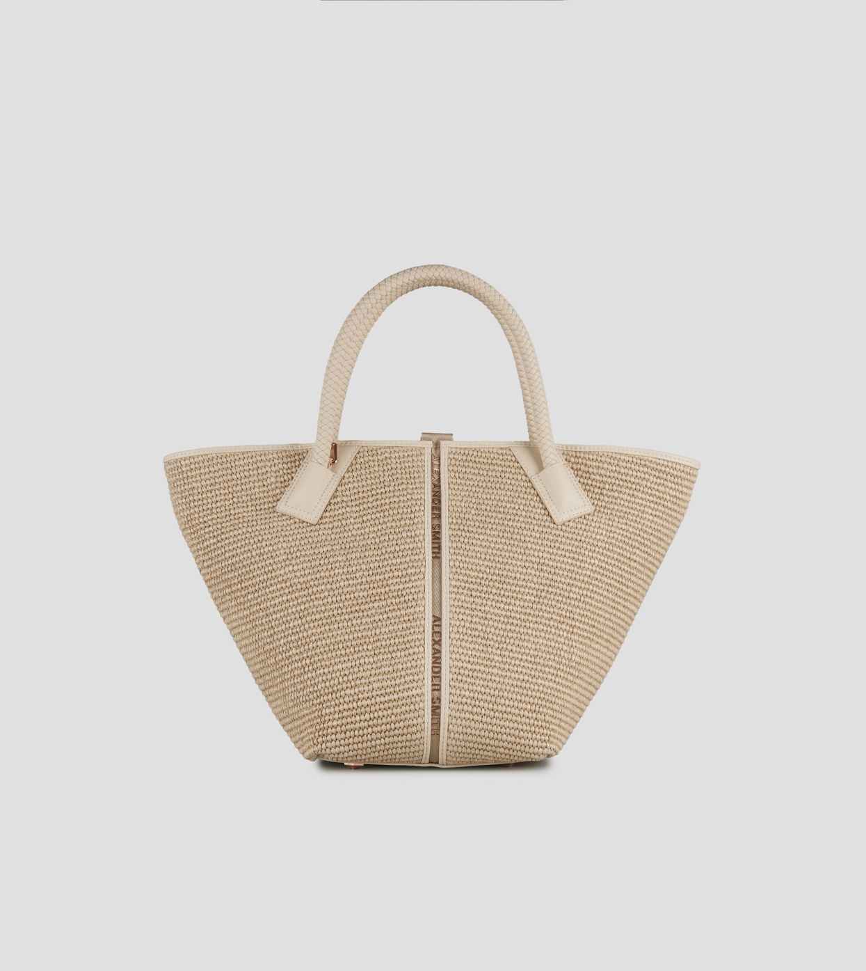 Lauren Medium borsa a mano con tracolla in rafia beige e manico intrecciato sabbia