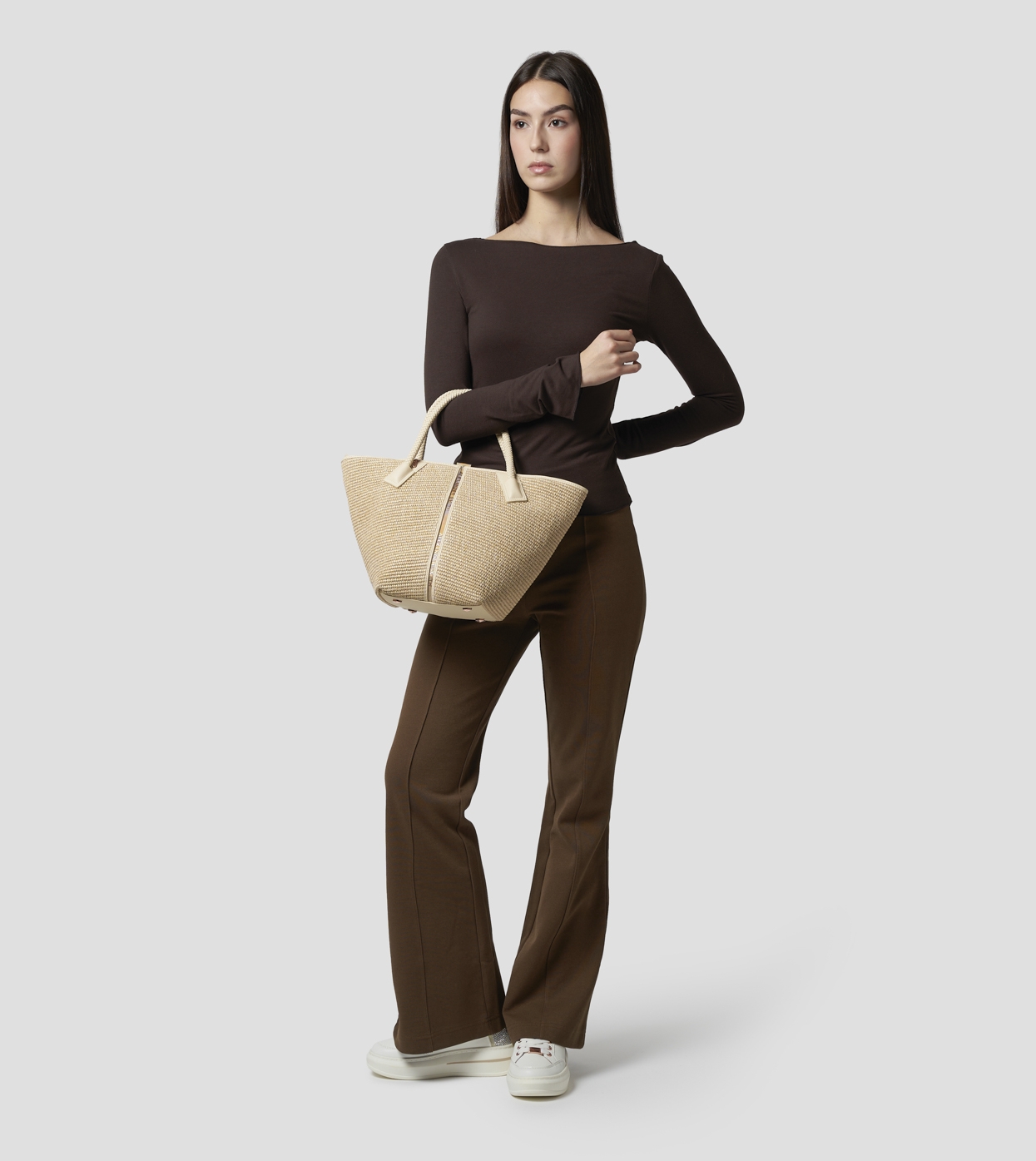 LAUREN è la shopper che unisce funzionalità e stile in un design contemporaneo e deciso. Le linee geometriche e il dettaglio centrale con logo definiscono un carattere forte ma versatile, perfetto per completare ogni look con un tocco moderno.
