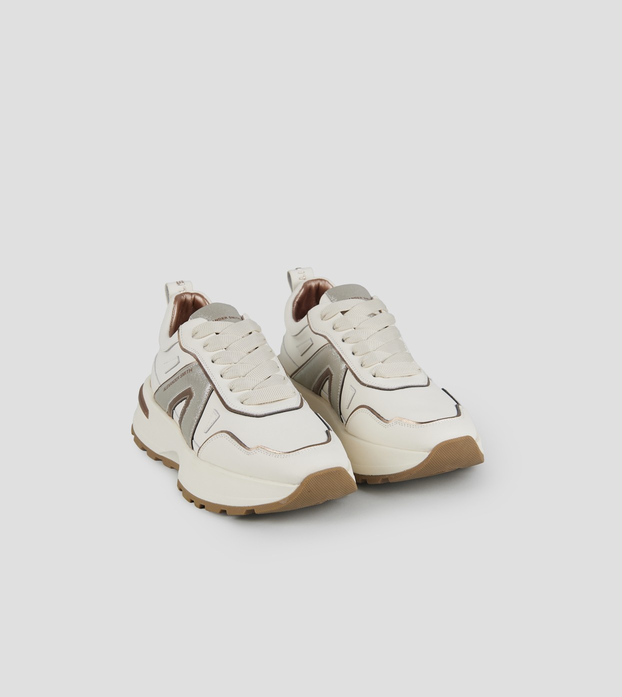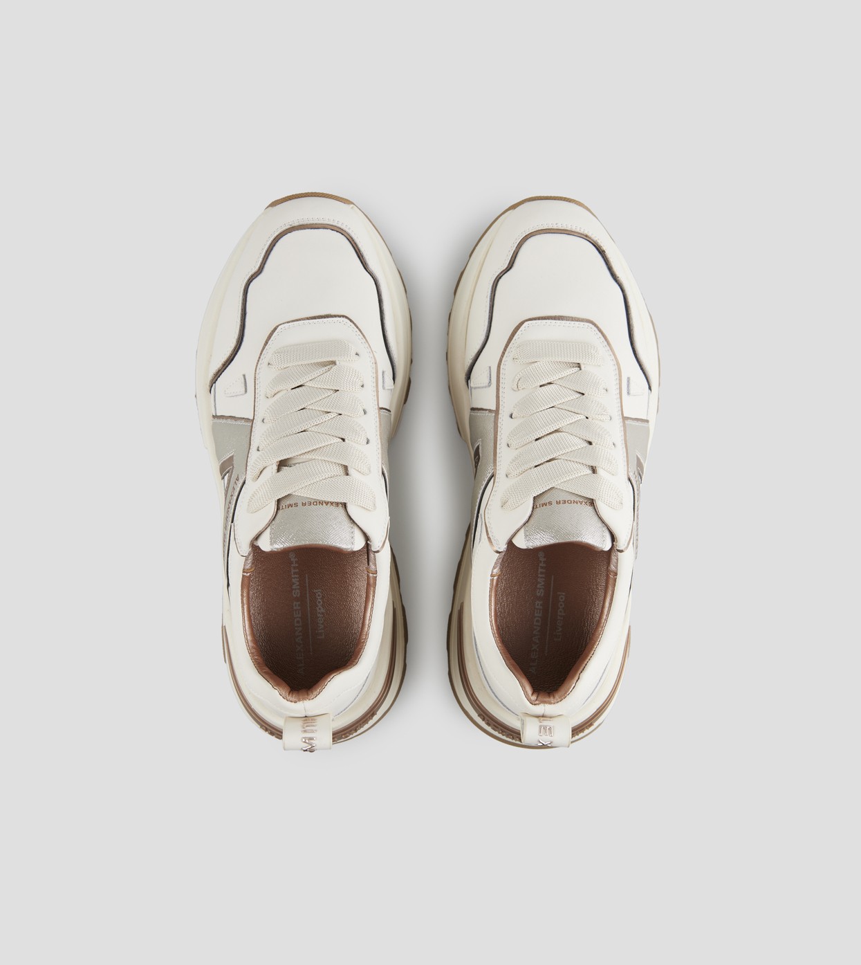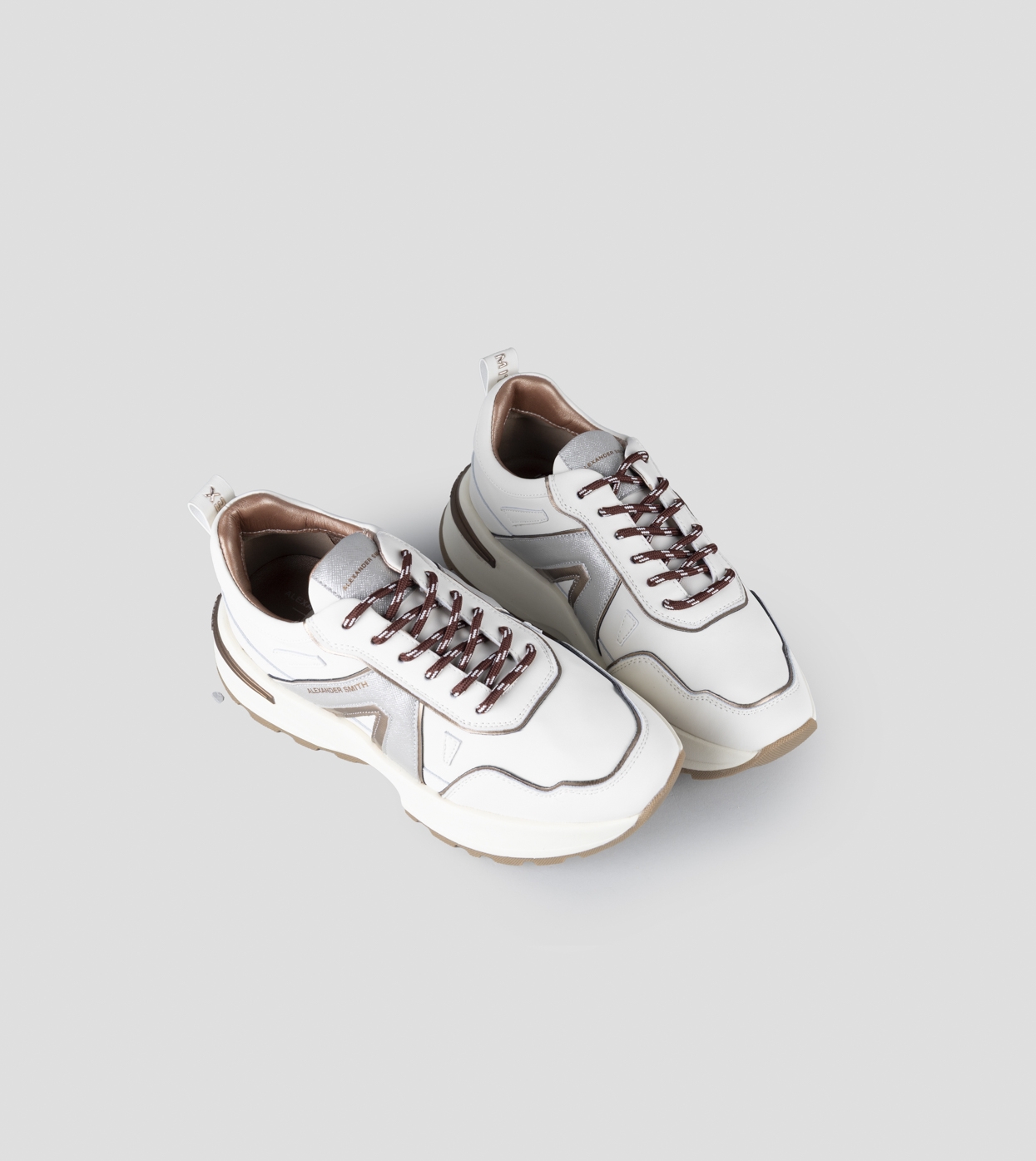 Il nuovo modello firmato Alexander Smith, che prende ispirazione da una delle città più iconiche del Regno Unito, è la nuova proposta running del brand: linea affusolata, suola importante e dettagli ricercati danno vita ad una sneakers versatile e distintiva, in questa variante in pelle bianca con logo laterale in glitter argento. In omaggio laccio rotondo ruggine con tratteggi bianchi.