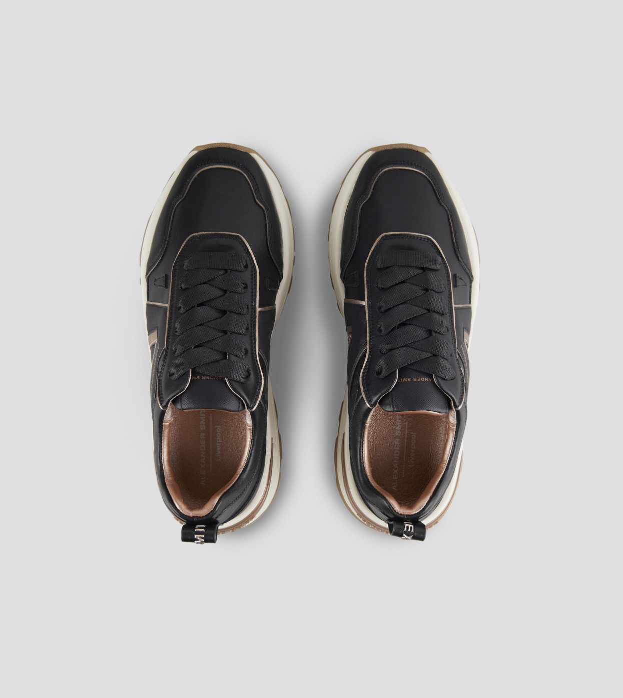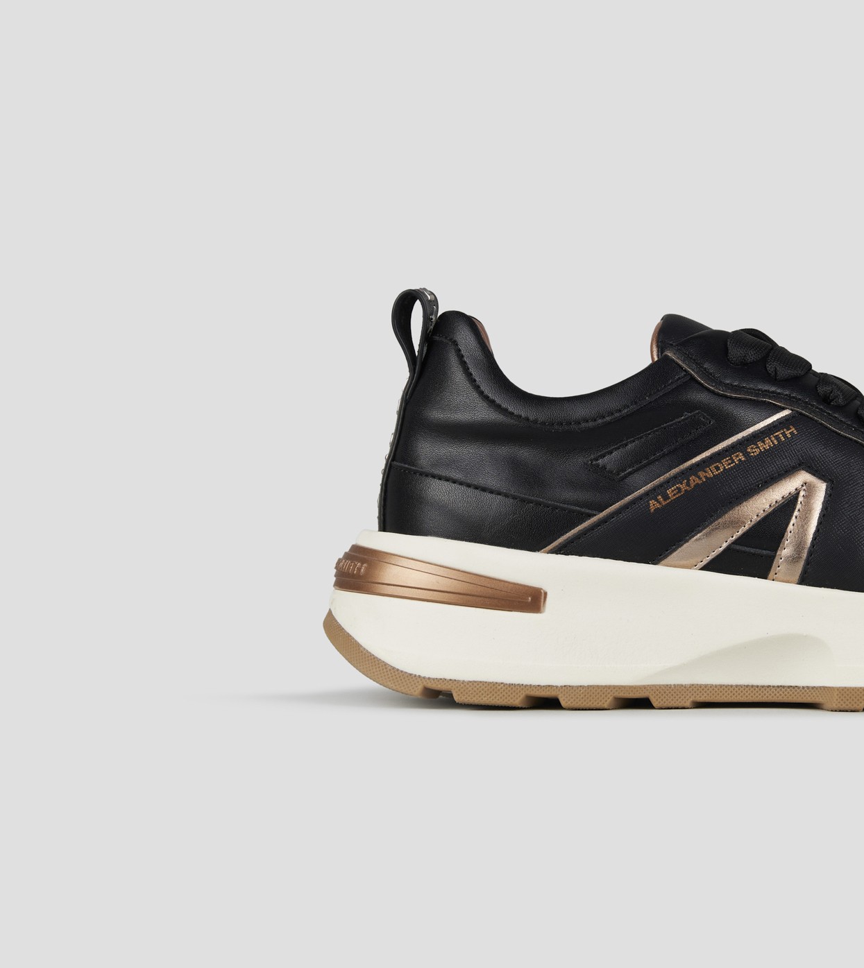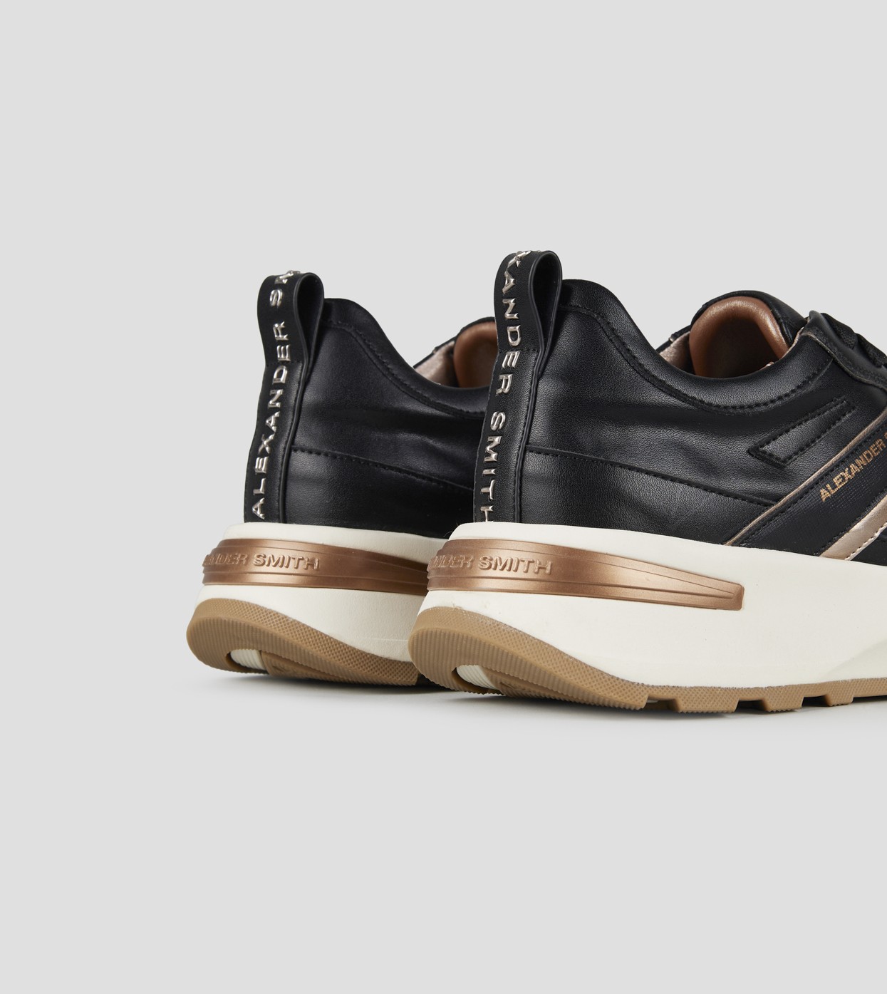 Il nuovo modello firmato Alexander Smith, che prende ispirazione da una delle città più iconiche del Regno Unito, è la nuova proposta running del brand: linea affusolata, suola importante e dettagli ricercati danno vita ad una sneakers versatile e distintiva, in questa variante in pelle nera con logo laterale in glitter.