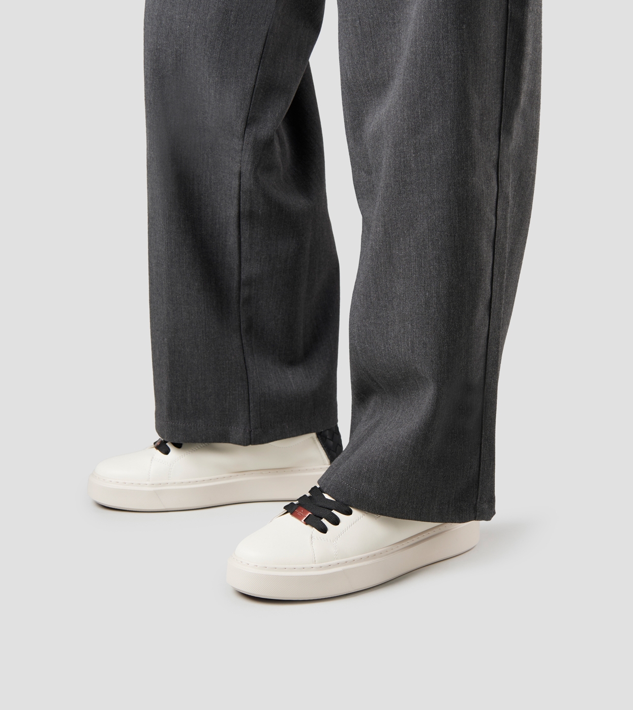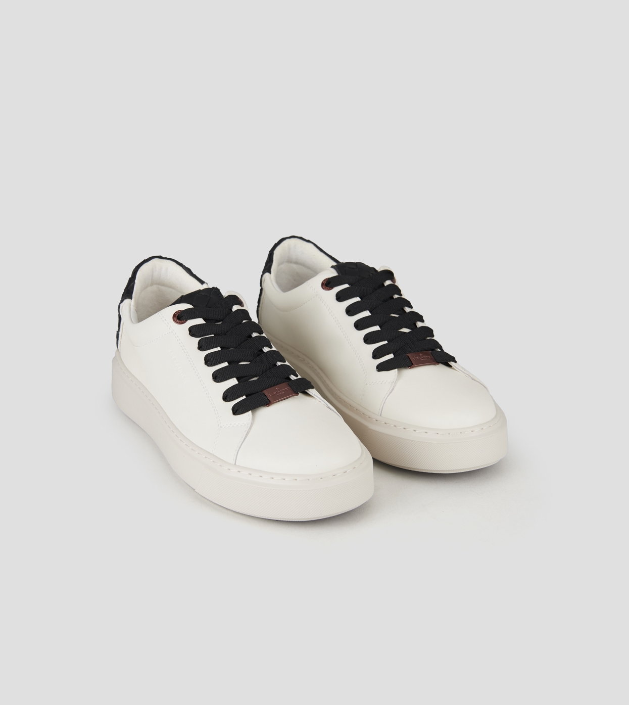 London Uomo in pelle bianca e tallone in pelle intrecciata nera