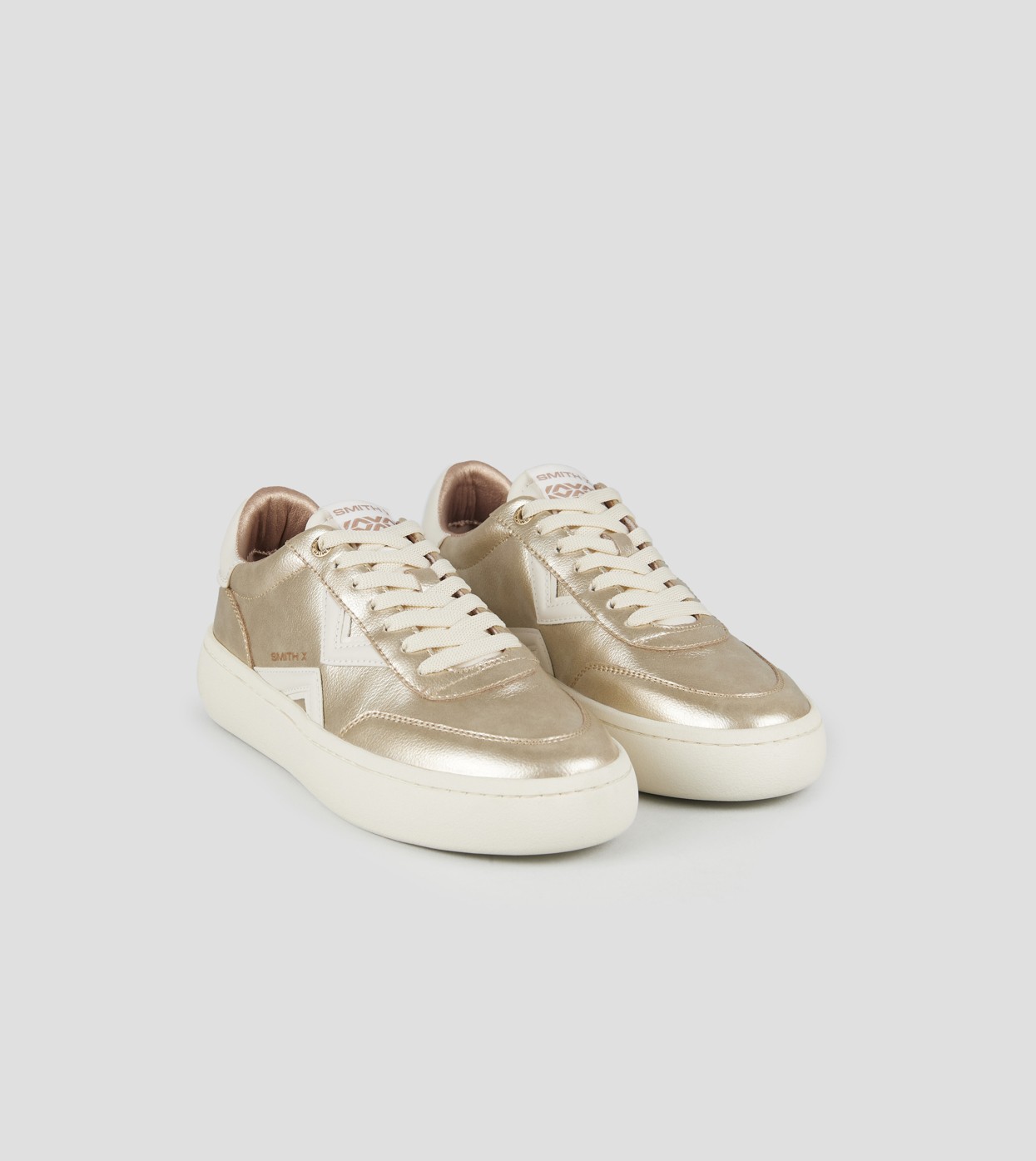 Ispirata al movimento, pensata per la leggerezza. OCEAN è la sneaker che traduce in design lo spirito fluido e dinamico della nuova generazione. La tomaia mescola materiali morbidi e tonalità ricercate, arricchita da dettagli inattesi che catturano lo sguardo, in questa variante laminata oro con logo laterale e tallone in bianco.