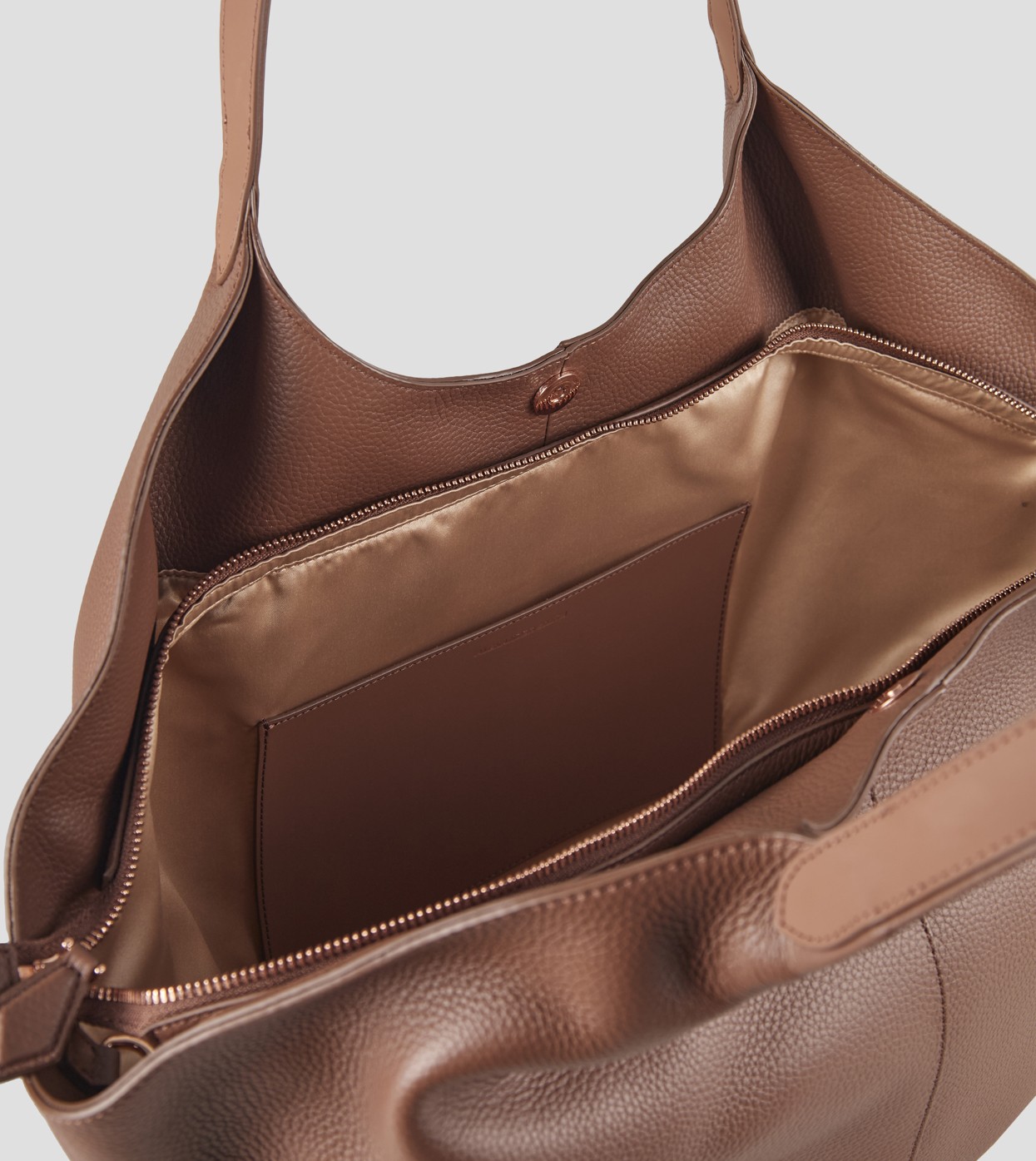 RACHEL è la shopper che interpreta l’equilibrio tra comfort e stile con forme fluide e proporzioni generose. Il design essenziale valorizza la sua silhouette ampia e accogliente, ideale per accompagnare ogni momento della giornata con eleganza rilassata.