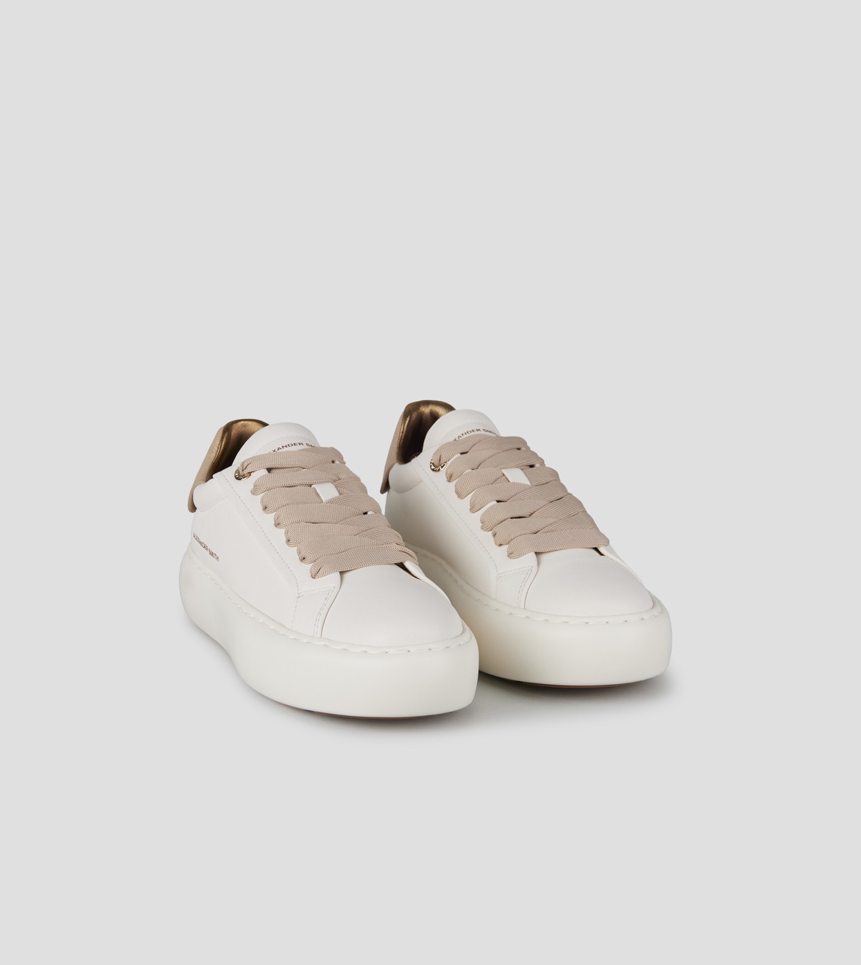 Soho Donna in morbida pelle bianca e tallone cracklè laminato oro