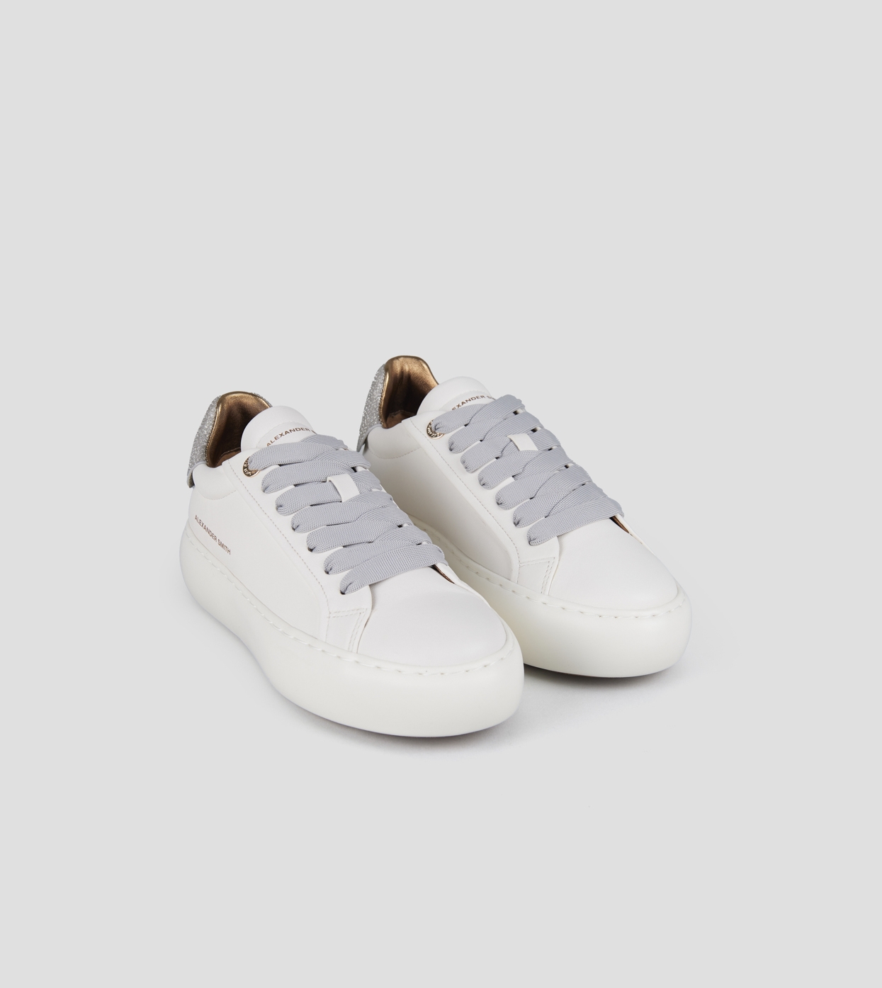 Soho Donna in pelle bianca e tallone argento con glitter