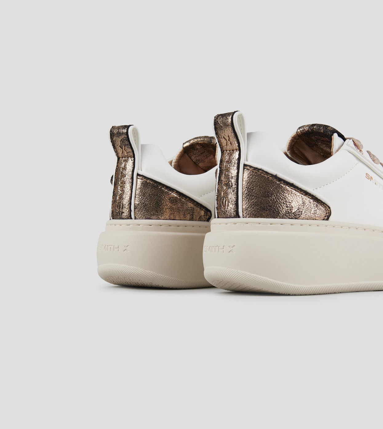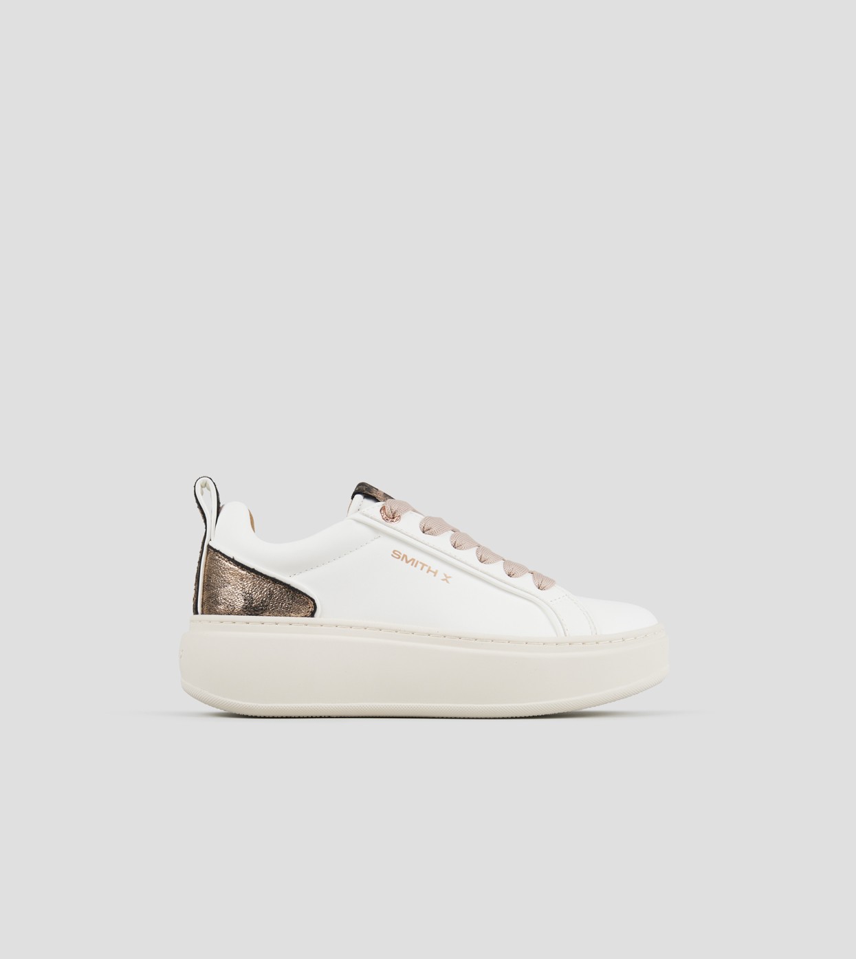 Pulita, lineare, intramontabile. STONE è la sneaker minimal firmata Smith X, che unisce spirito urbano e gusto raffinato in un design unisex pensato per durare nel tempo, in questa variante in bianco con tallone in laminato leopardato beige e suola beige.