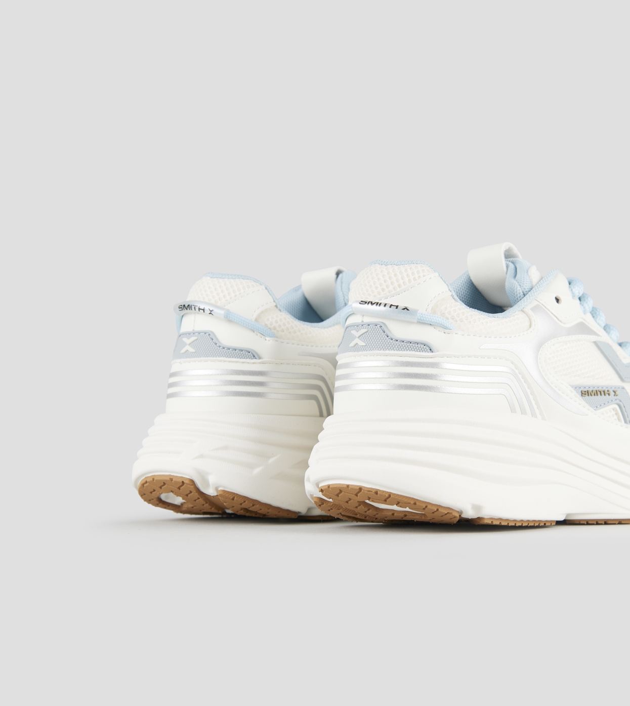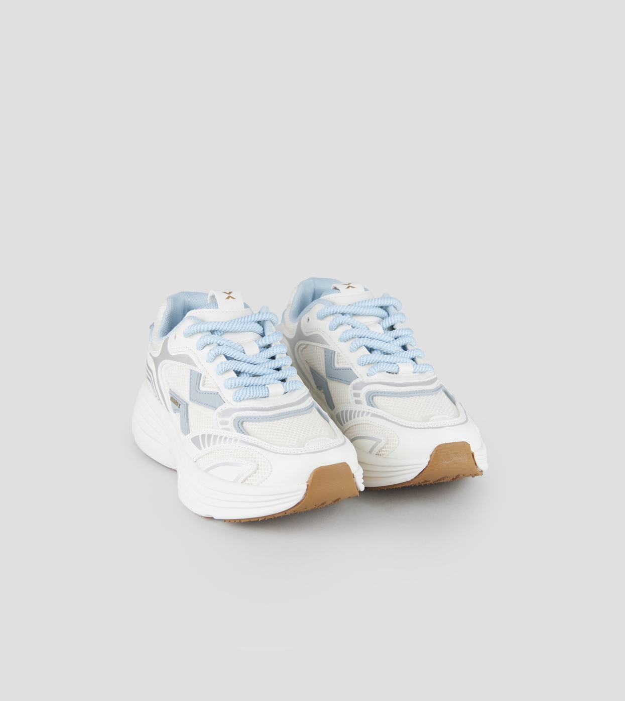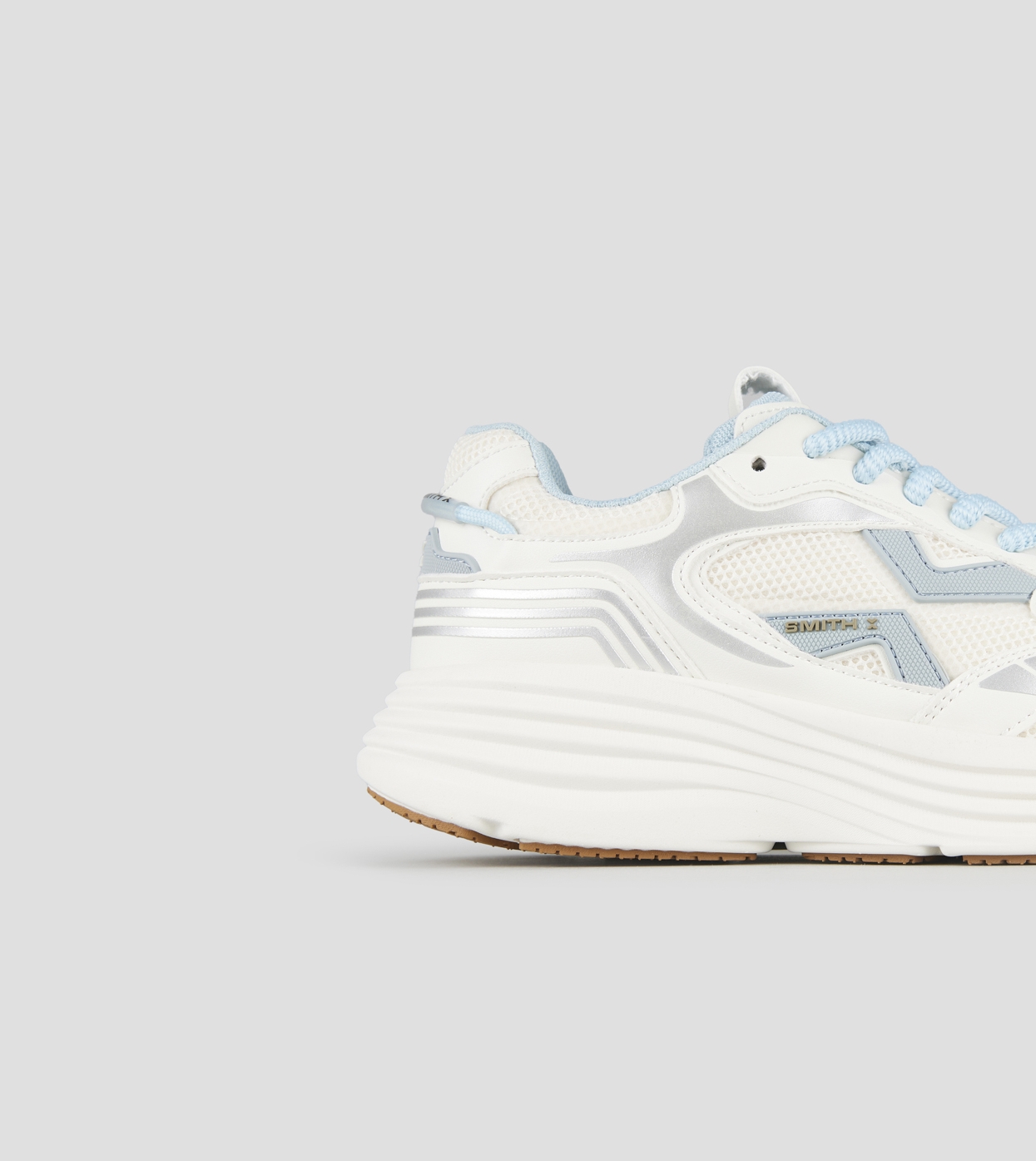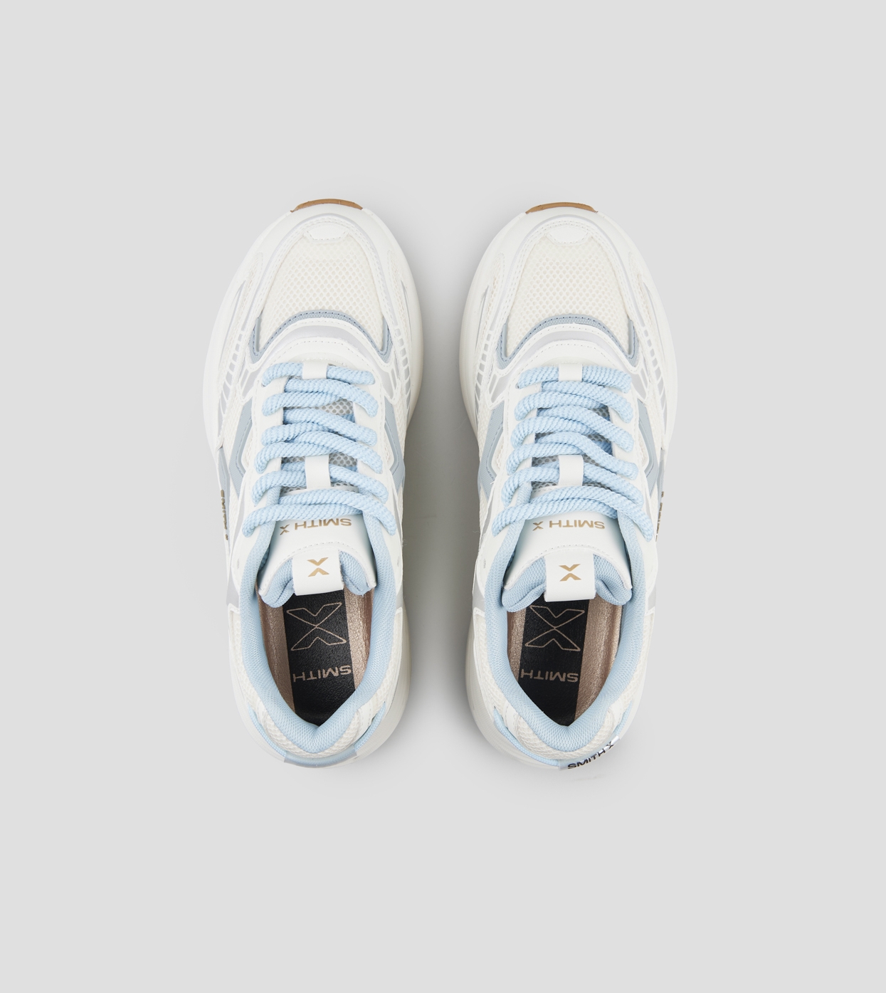 Storm Donna in pelle bianca e tessuto tecnico con dettagli azzurri