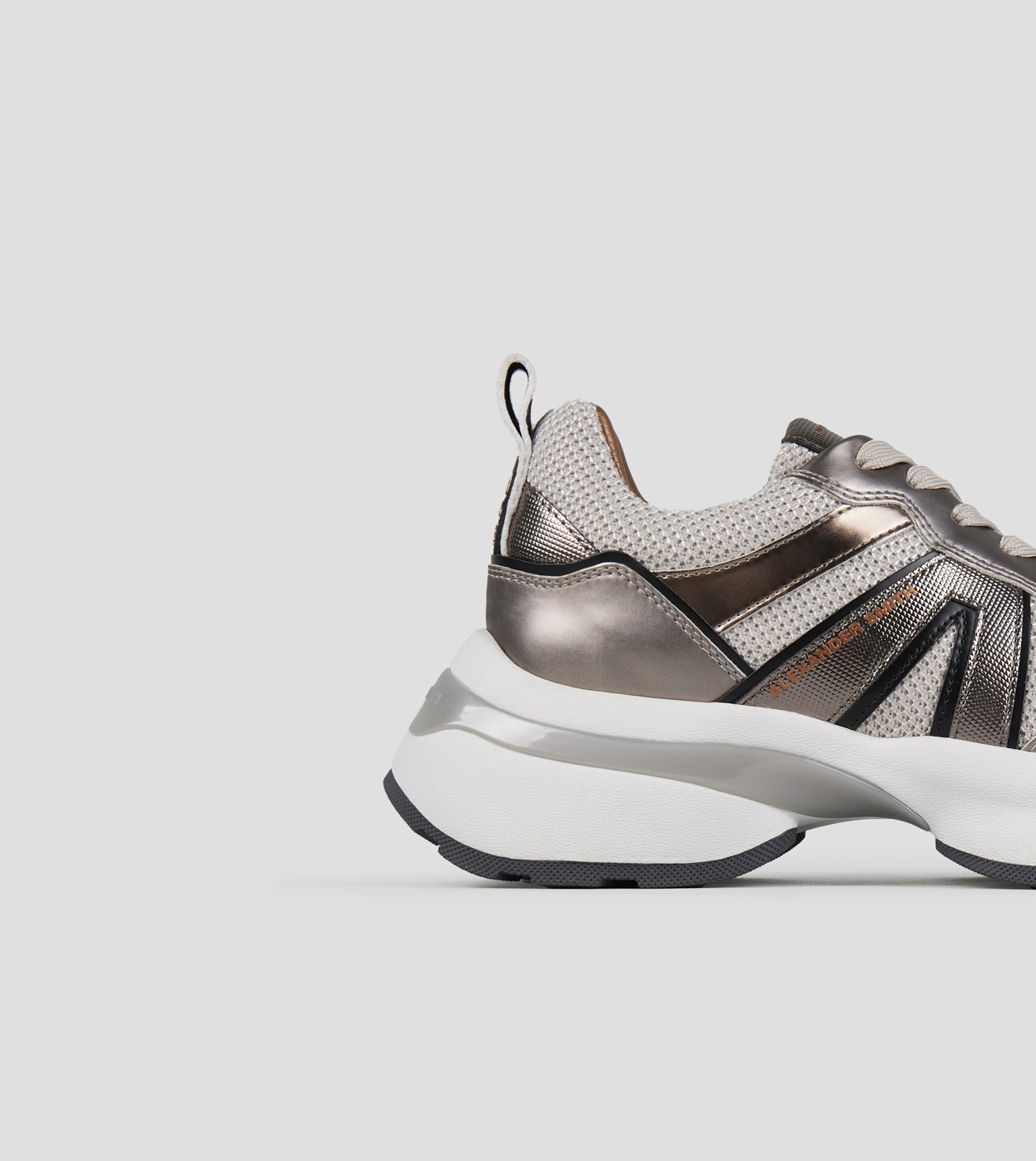 Il nuovo modello Victoria di Alexander Smith nasce per accompagnare ogni passo con grinta ed eleganza. Linee decise, dettagli metallici e una suola bold definiscono una sneaker dallo spirito contemporaneo, perfetta per chi vuole distinguersi. Victoria è l’equilibrio perfetto tra performance urbana e ricercatezza estetica, in questa variante in mesh argento e dettagli specchio.