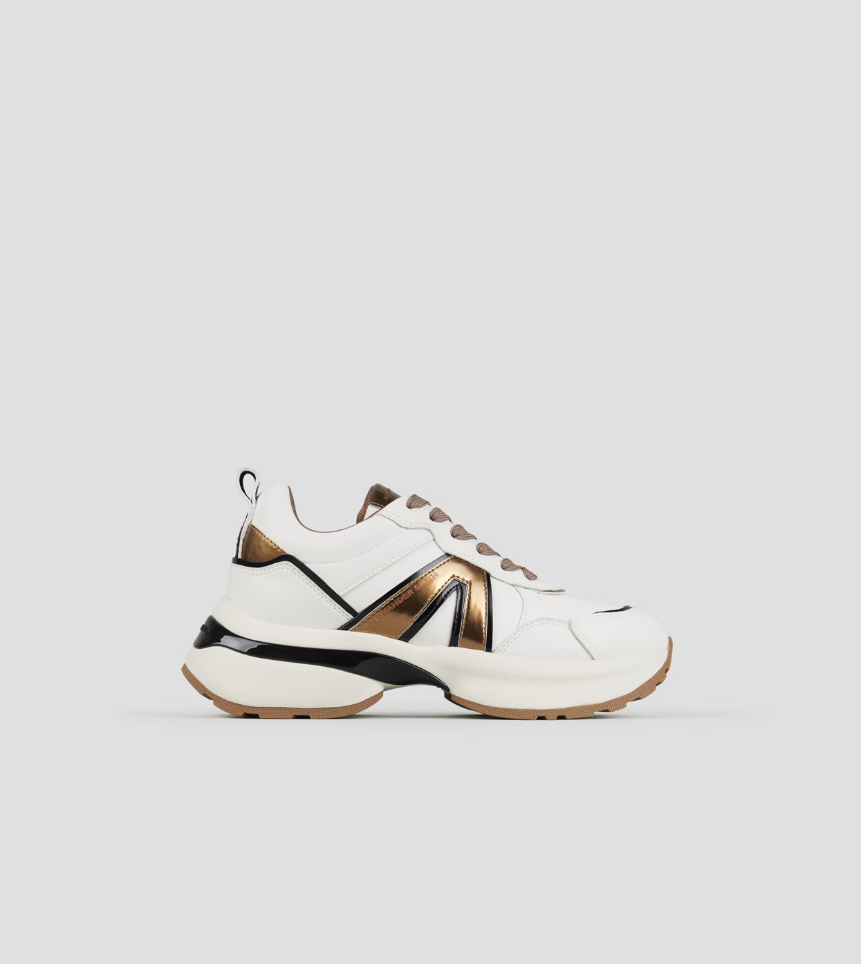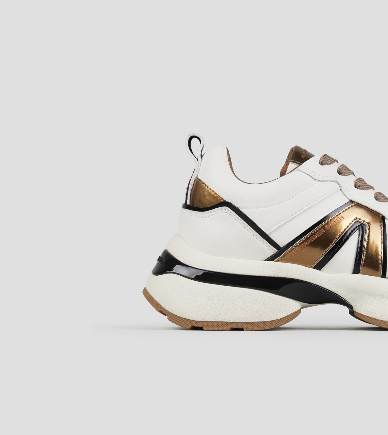 Il nuovo modello Victoria di Alexander Smith nasce per accompagnare ogni passo con grinta ed eleganza. Linee decise, dettagli metallici e una suola bold definiscono una sneaker dallo spirito contemporaneo, perfetta per chi vuole distinguersi. Victoria è l’equilibrio perfetto tra performance urbana e ricercatezza estetica, in questa variante in pelle bianca con logo laterale e dettagli bronzo.