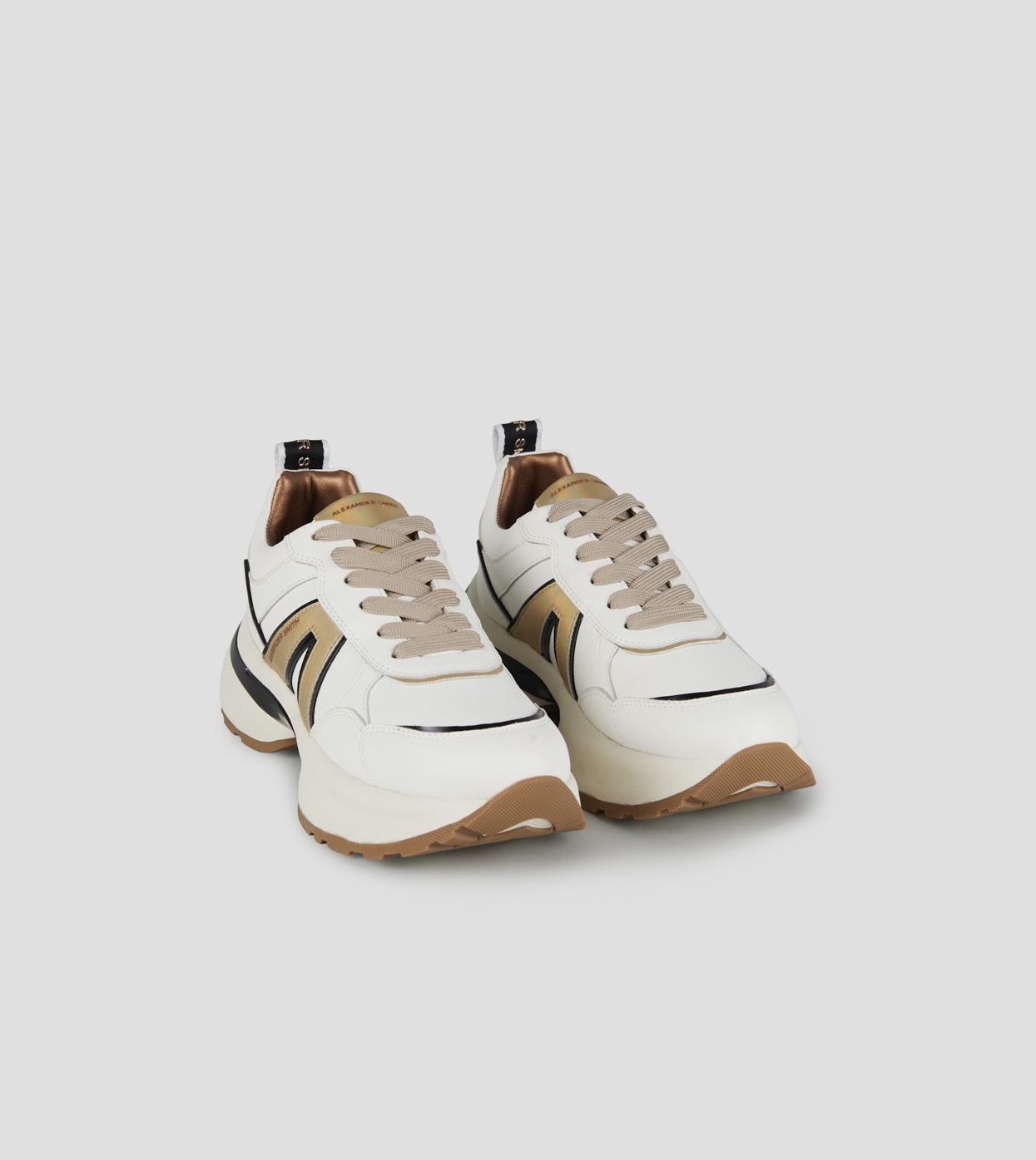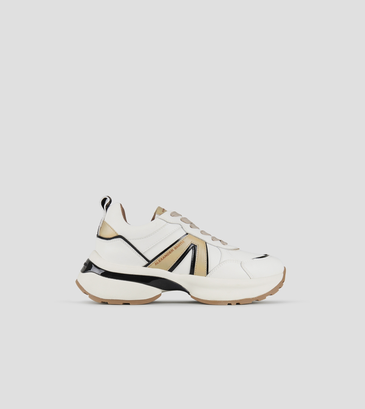 Il nuovo modello Victoria di Alexander Smith nasce per accompagnare ogni passo con grinta ed eleganza. Linee decise, dettagli metallici e una suola bold definiscono una sneaker dallo spirito contemporaneo, perfetta per chi vuole distinguersi. Victoria è l’equilibrio perfetto tra performance urbana e ricercatezza estetica, in questa variante in pelle bianca con logo laterale e dettagli dorati. In omaggio laccio rotondo nude con tratteggi bianchi.