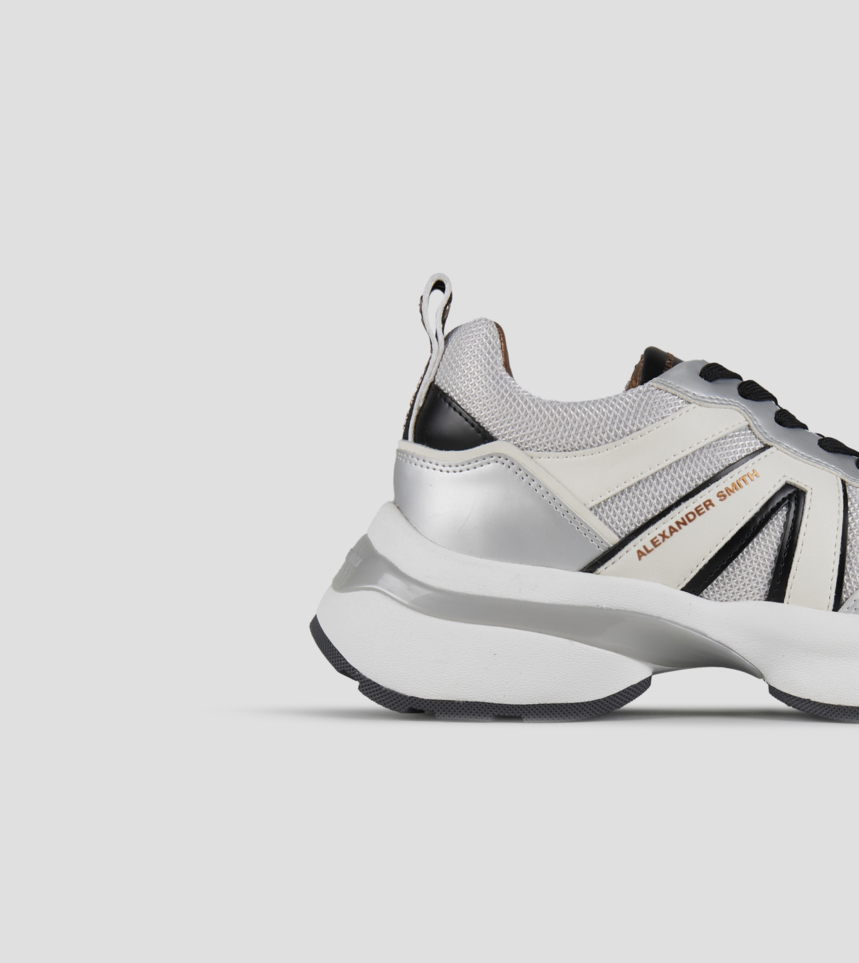 Il nuovo modello Victoria di Alexander Smith nasce per accompagnare ogni passo con grinta ed eleganza. Linee decise, dettagli metallici e una suola bold definiscono una sneaker dallo spirito contemporaneo, perfetta per chi vuole distinguersi. Victoria è l’equilibrio perfetto tra performance urbana e ricercatezza estetica, in questa variante in pelle e mesh argento, e dettagli specchio. In omaggio laccio rotondo nero con tratteggi bianchi.