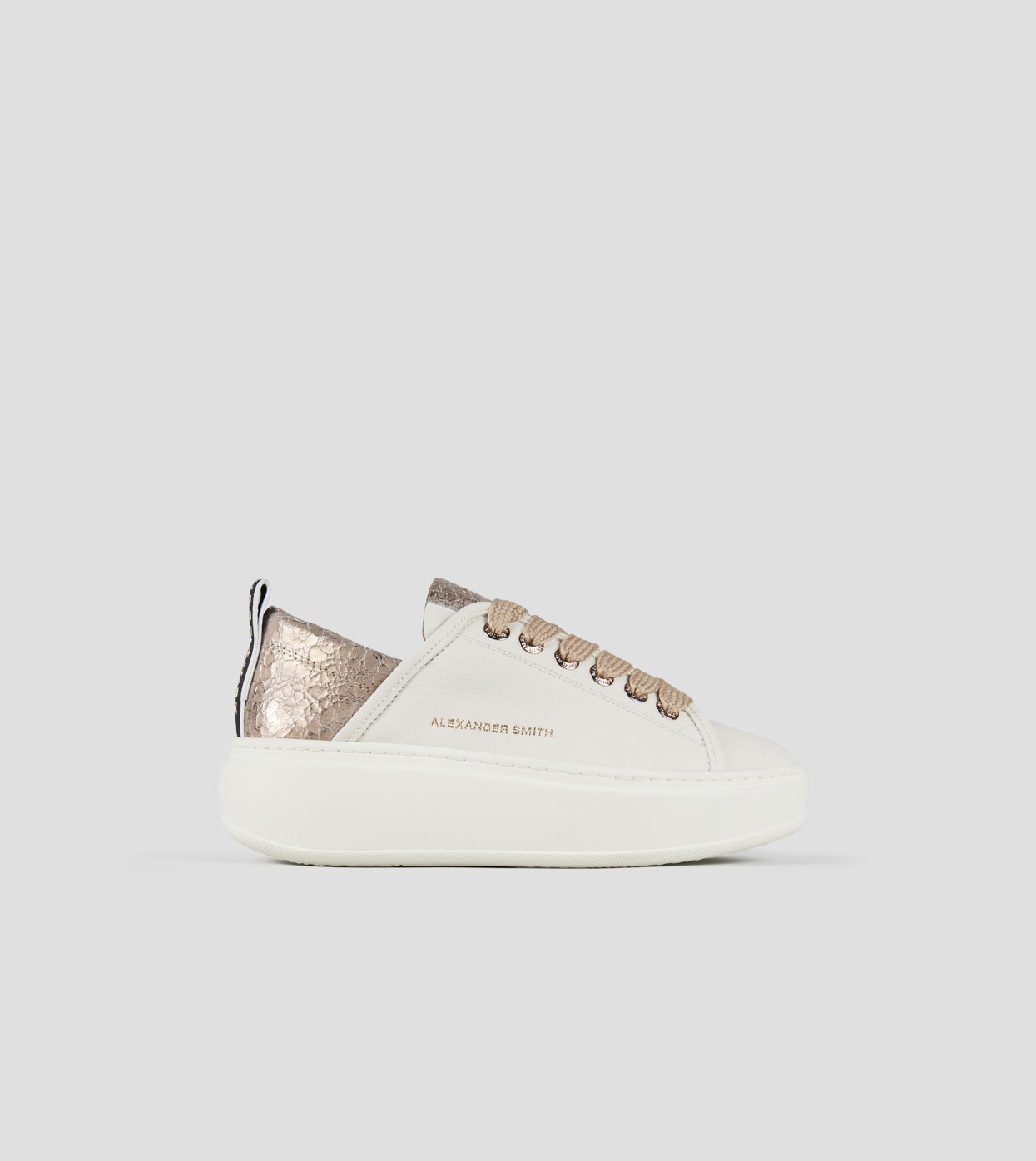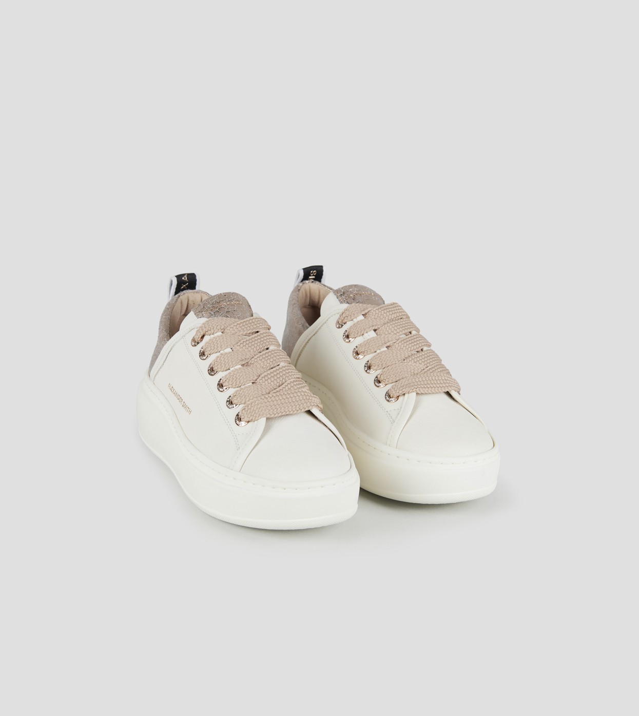 Wembley Alta Donna in pelle bianca e tallone in pelle cracklè laminata beige