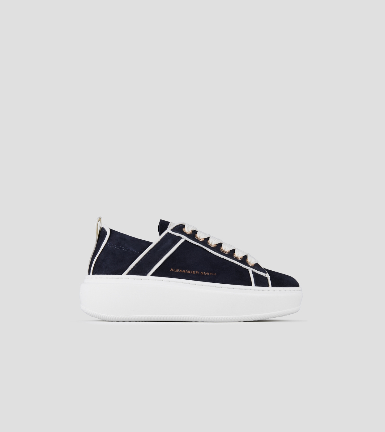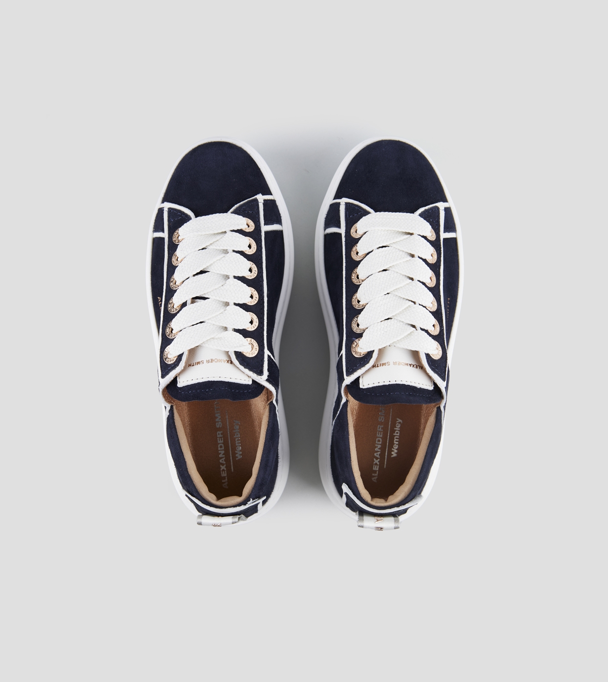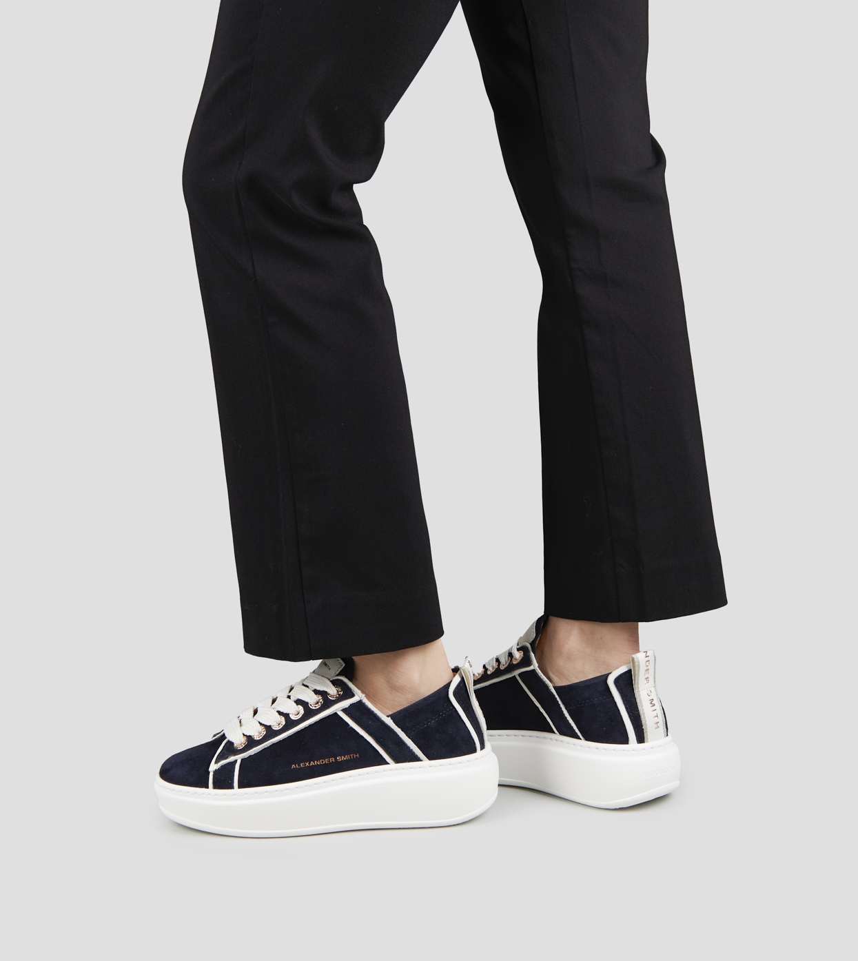 Wembley Alta Donna in camoscio blu e dettagli in pelle bianca