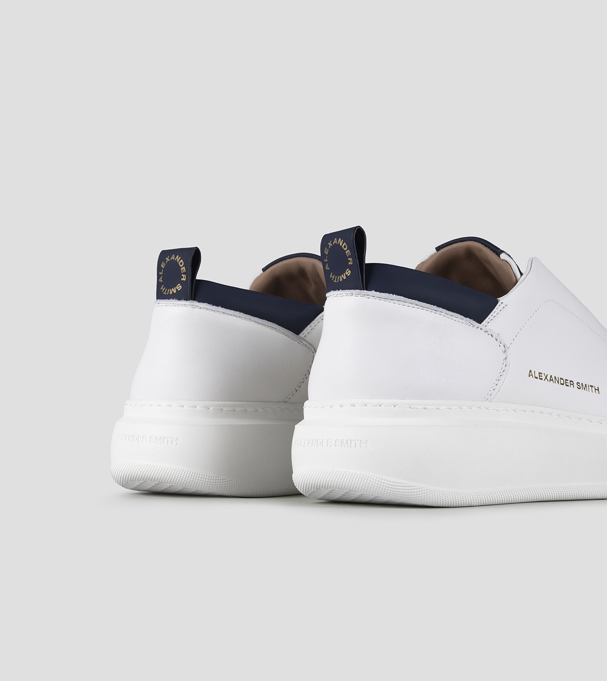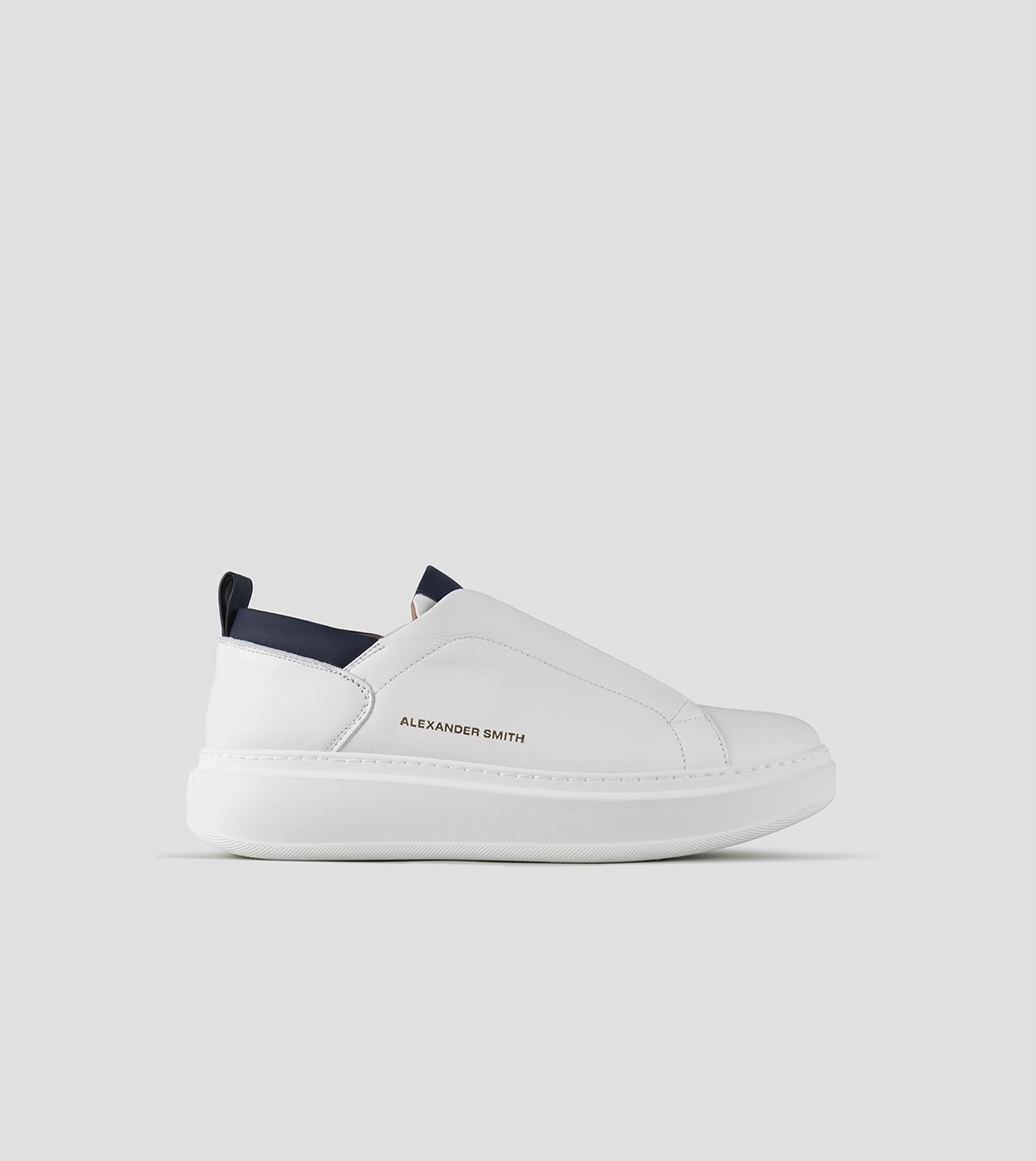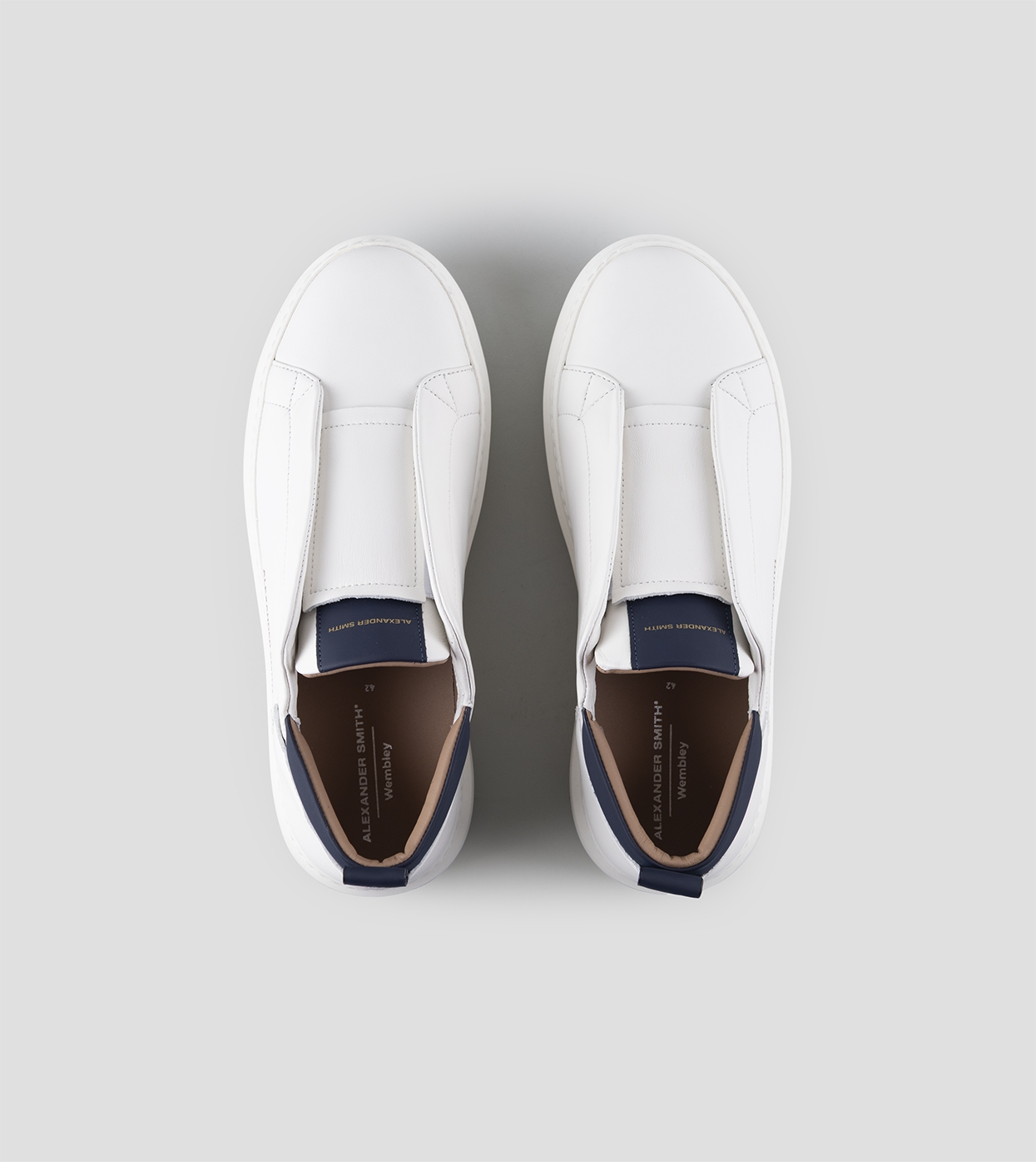 Wembley Slip-on Uomo in morbida pelle bianca con dettagli blu