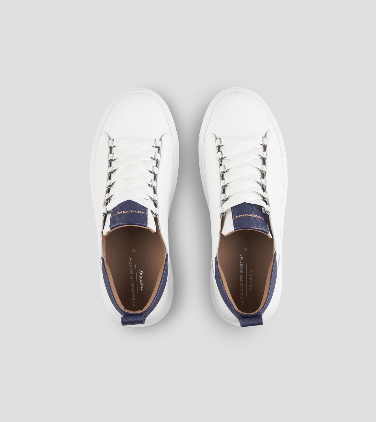 Wembley Uomo in pelle bianca e dettagli in pelle saffiano blu