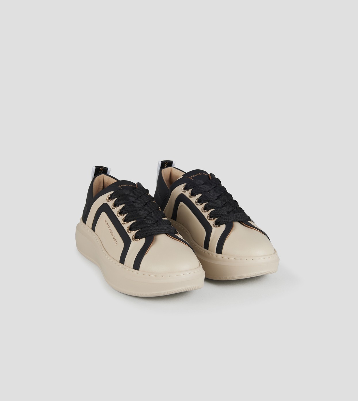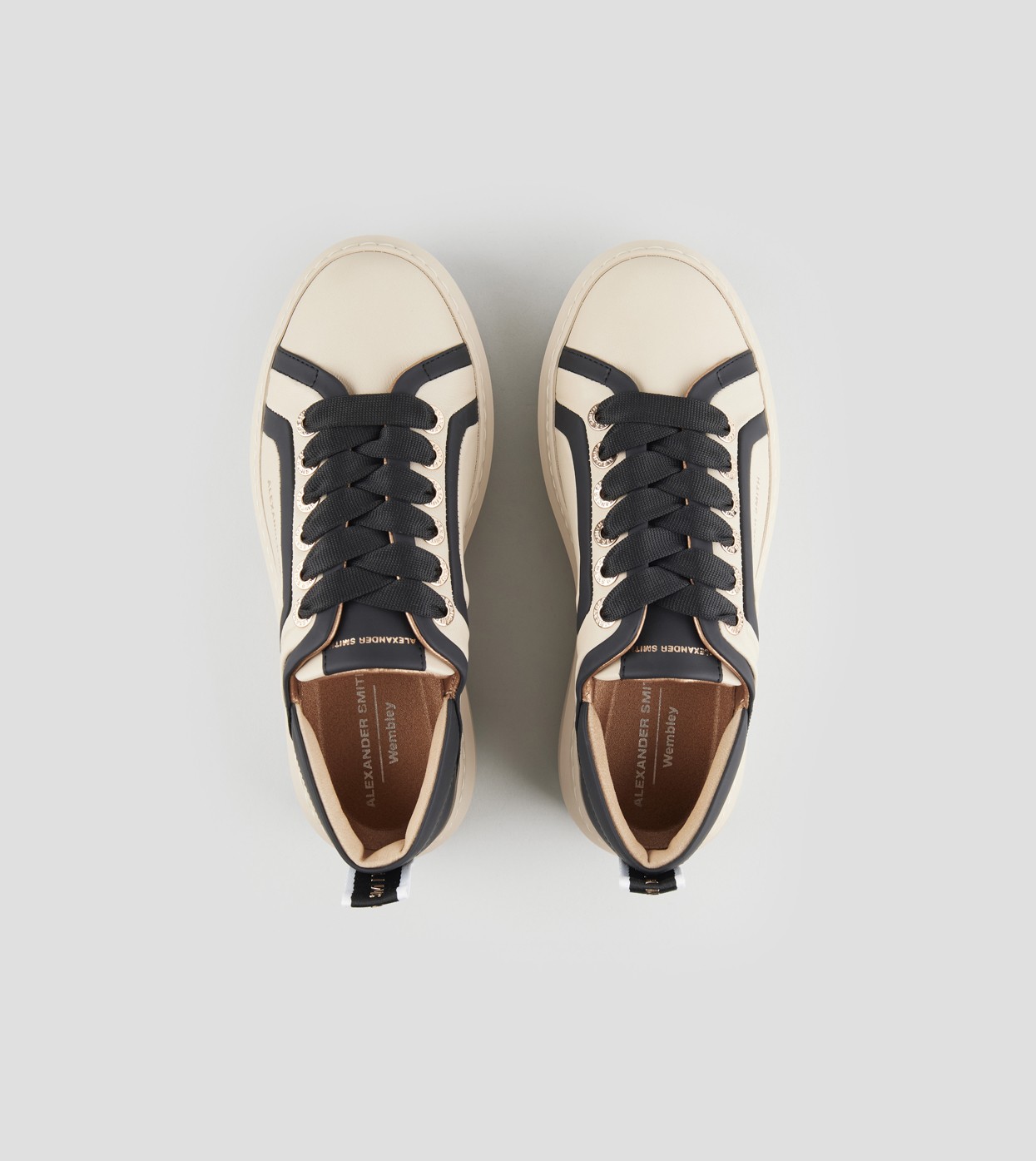 Il riferimento al famoso stadio inglese è chiaro: sportività ed eleganza si fondono per dare vita a questo modello. Le Wembley rappresentano l’equilibrio tra comodità, stile e sobrietà, ai quali si aggiunge modernità grazie ai dettagli unici che fanno la differenza, in questa versione in pelle liscia color nude con nervatura laterale e tallone neri.