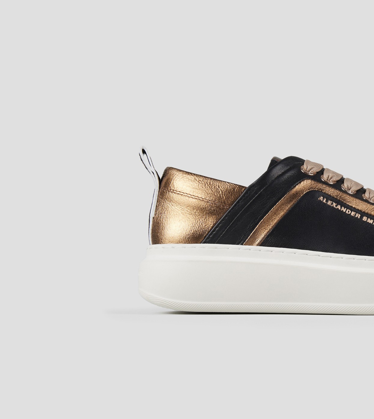 Il riferimento al famoso stadio inglese è chiaro: sportività ed eleganza si fondono per dare vita a questo modello. Le Wembley rappresentano l’equilibrio tra comodità, stile e sobrietà, ai quali si aggiunge modernità grazie ai dettagli unici che fanno la differenza, in questa versione in pelle liscia nera con nervatura laterale e tallone bronzo.