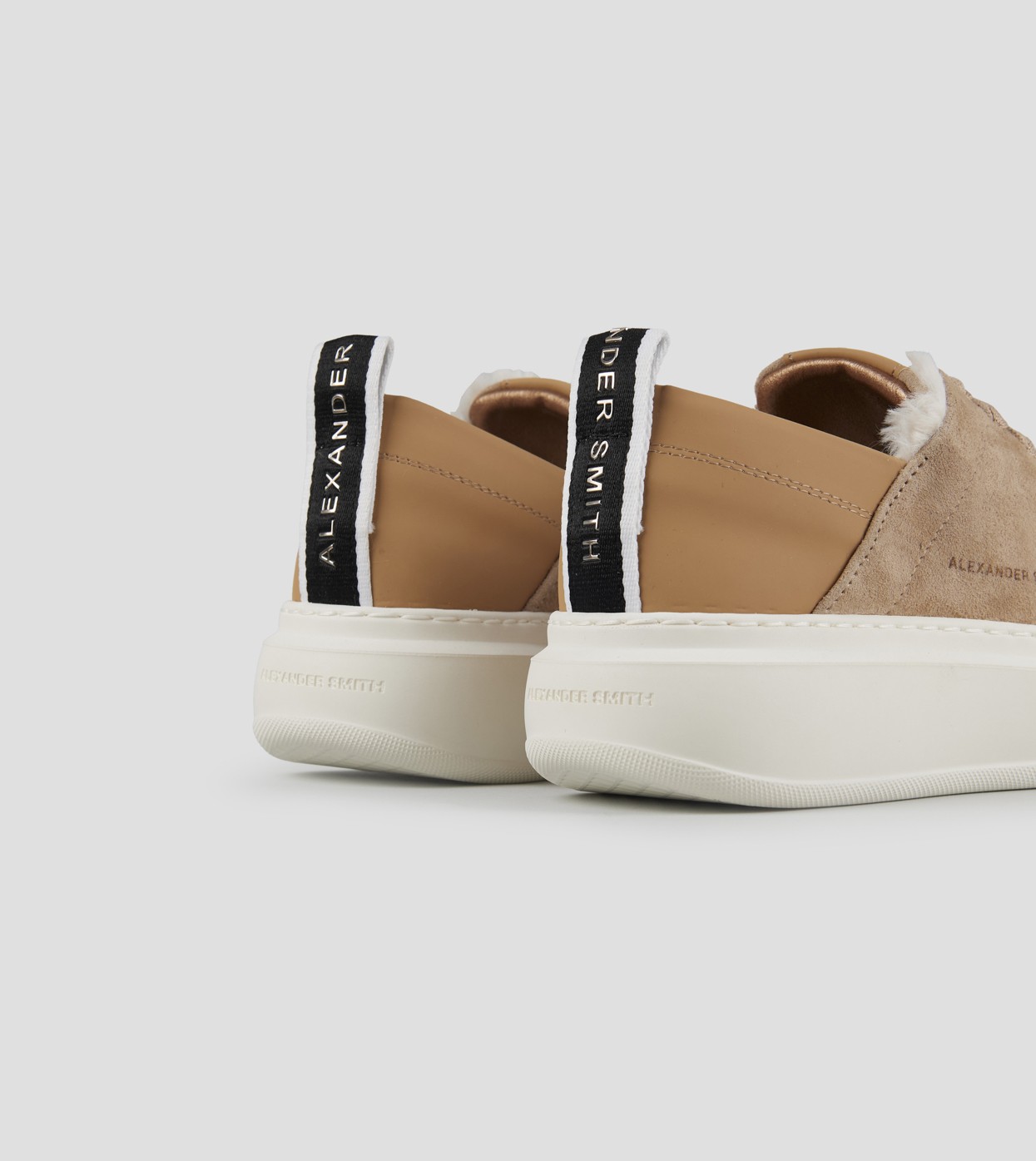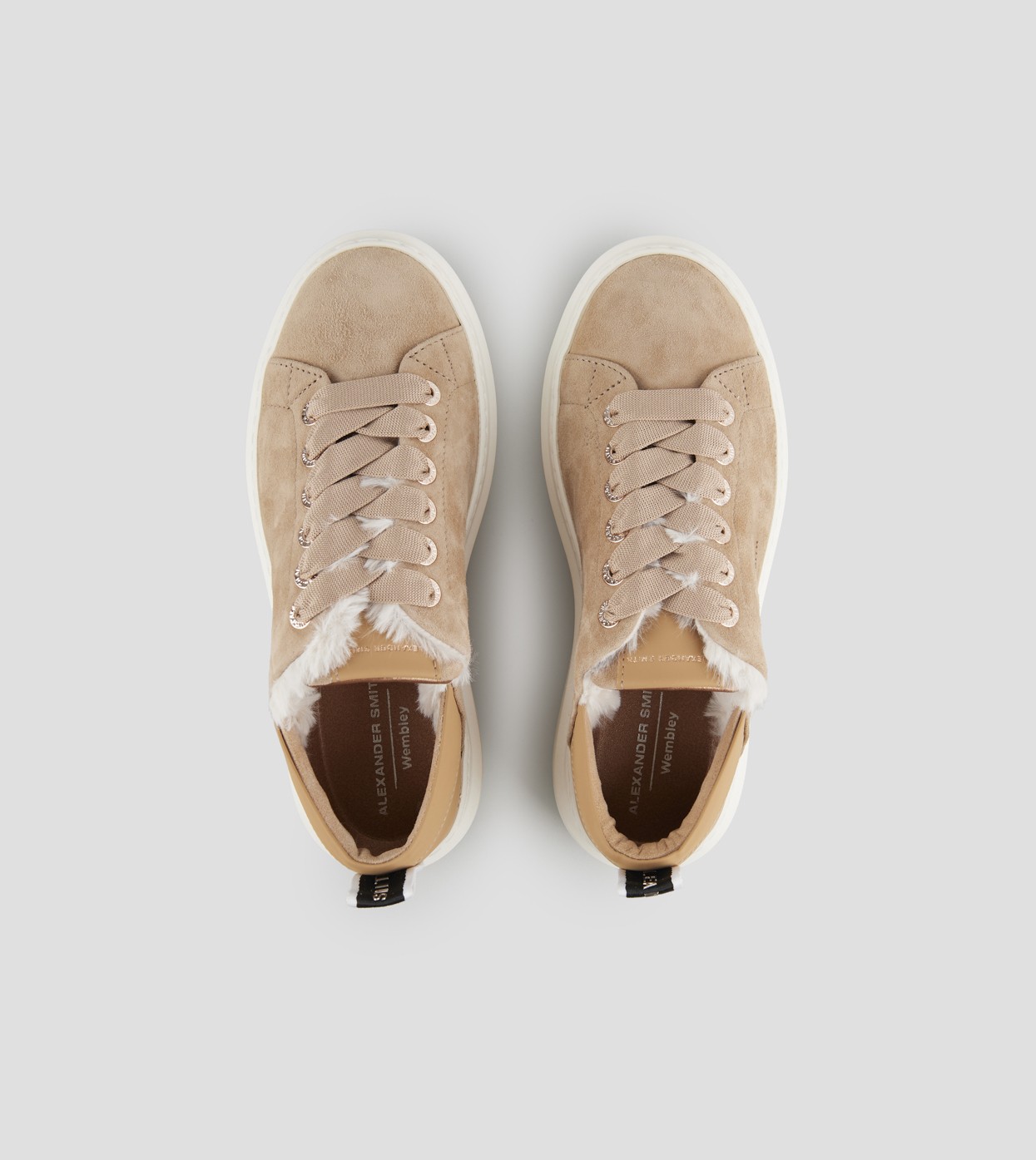 Il riferimento al famoso stadio inglese è chiaro: sportività ed eleganza si fondono per dare vita a questo modello. Le Wembley rappresentano l’equilibrio tra comodità, stile e sobrietà, ai quali si aggiunge modernità grazie ai dettagli unici che fanno la differenza, in questa versione in suede beige e fodera in eco-pelliccia bianca.
