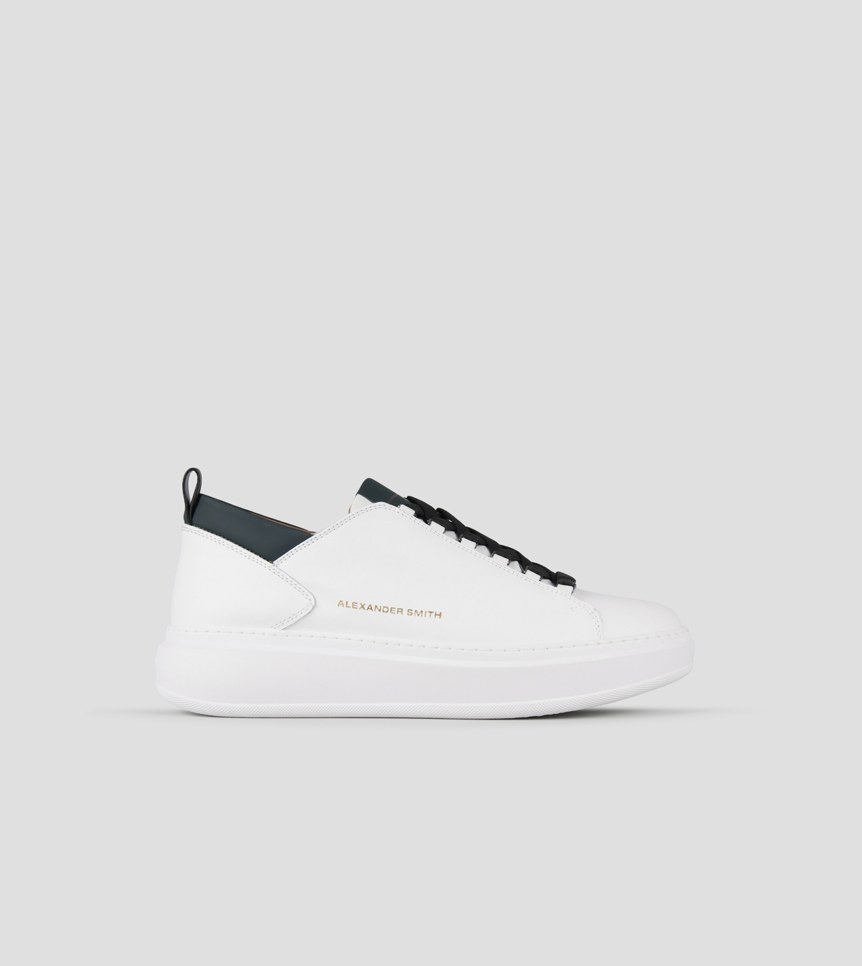 Wembley Uomo in morbida pelle bianca e dettagli verde scuro