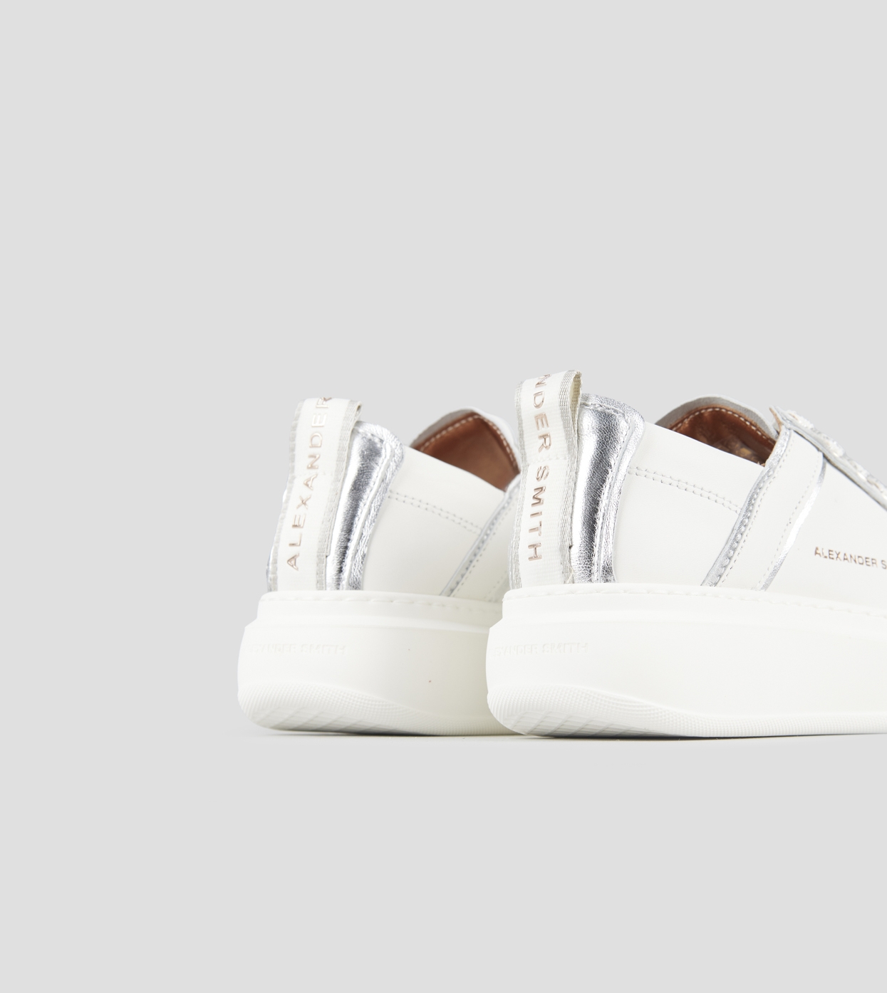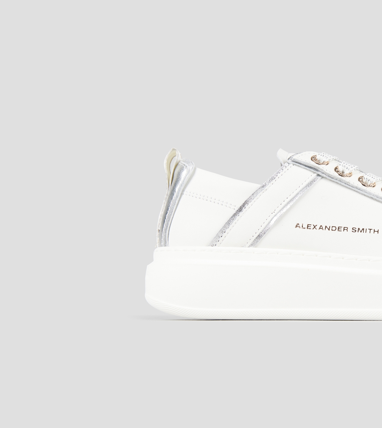 Wembley Donna Decostruita in pelle bianca e dettagli in laminato argento