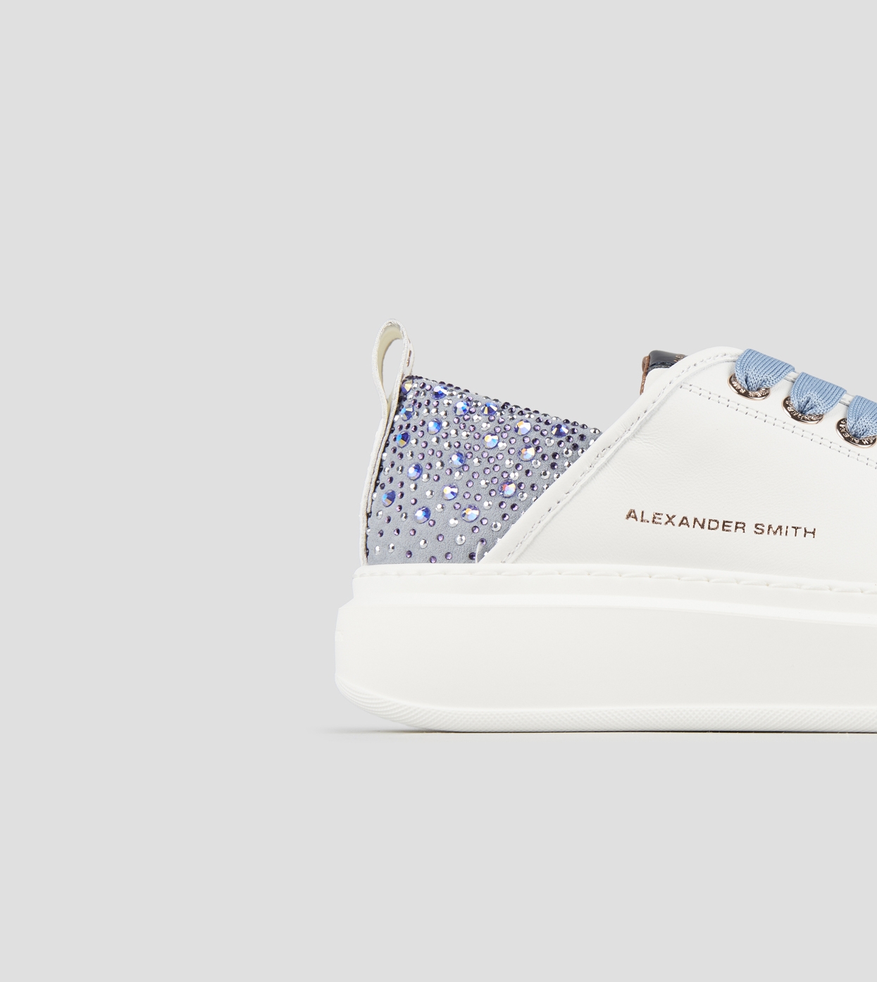 Wembley Donna in pelle bianca e tallone azzurro con strass