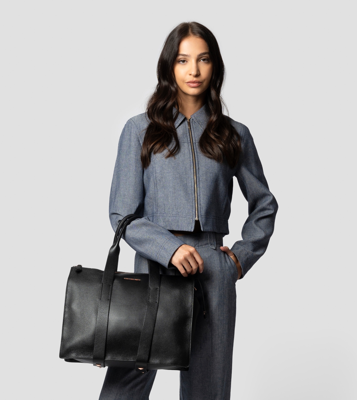 JANE is a tote bag with a bold structure and urban character, designed to accompany you every day with style. Its clean lines and integrated handles define its identity, combining aesthetics and functionality in perfect balance.