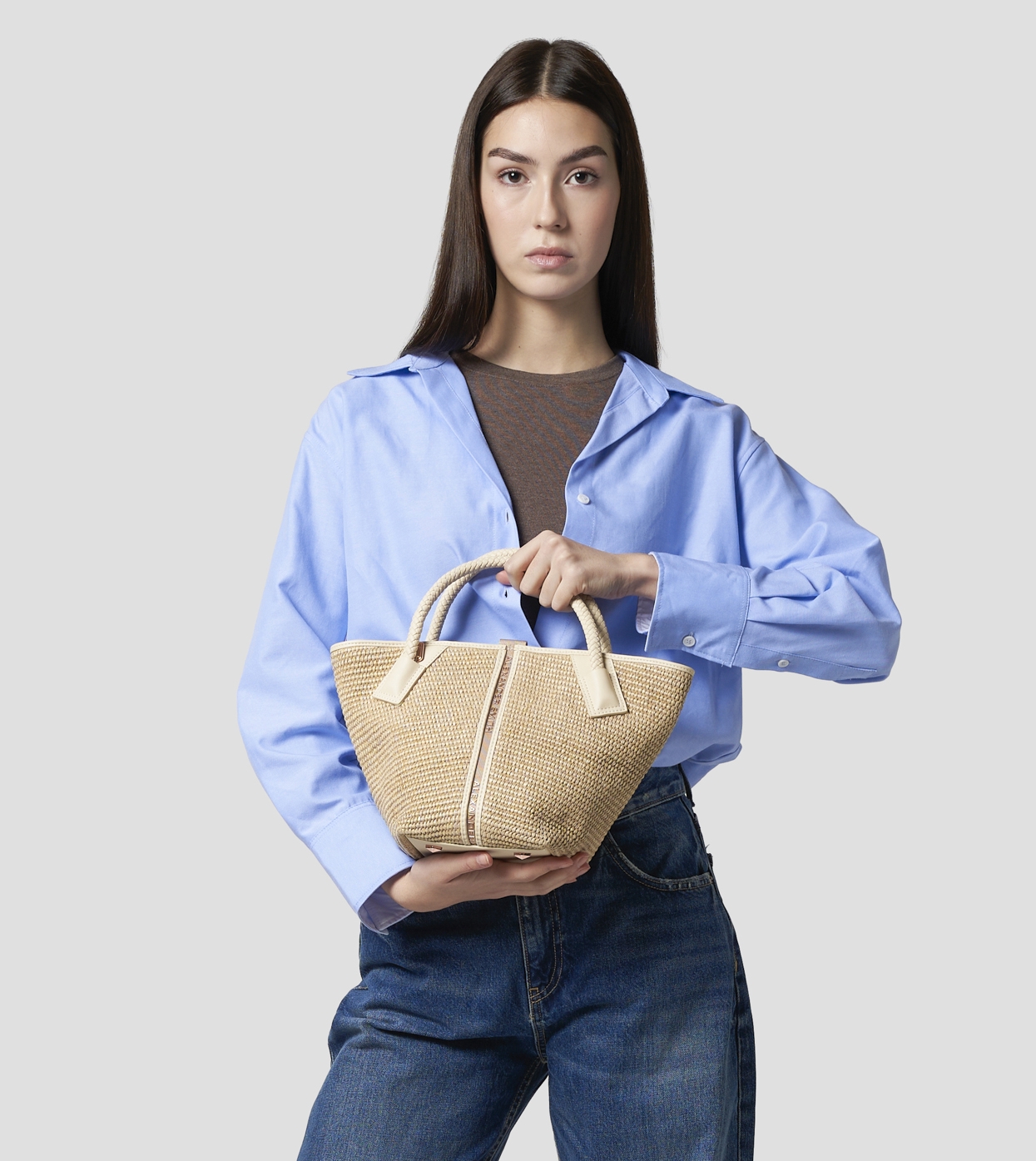 LAUREN is a shopper bag that combines functionality and style in a contemporary and bold design. The geometric lines and central logo detail define a strong yet versatile character, perfect for completing any look with a modern touch.